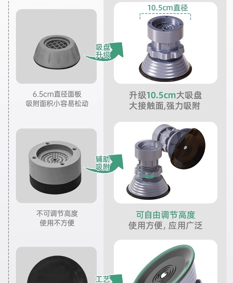 ★巨稳【8-12cm可调】升级减震吸盘◆4个装-灰色