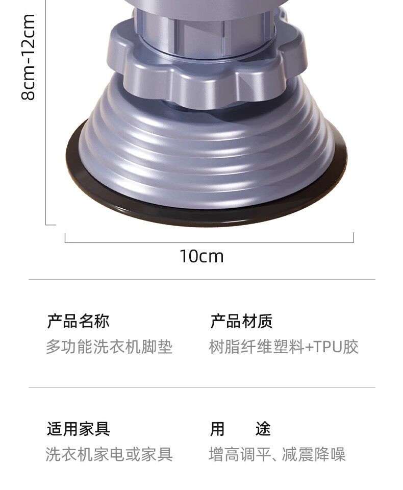 巨稳【8-12cm可调】易打扫防积水◆4个装-灰色
