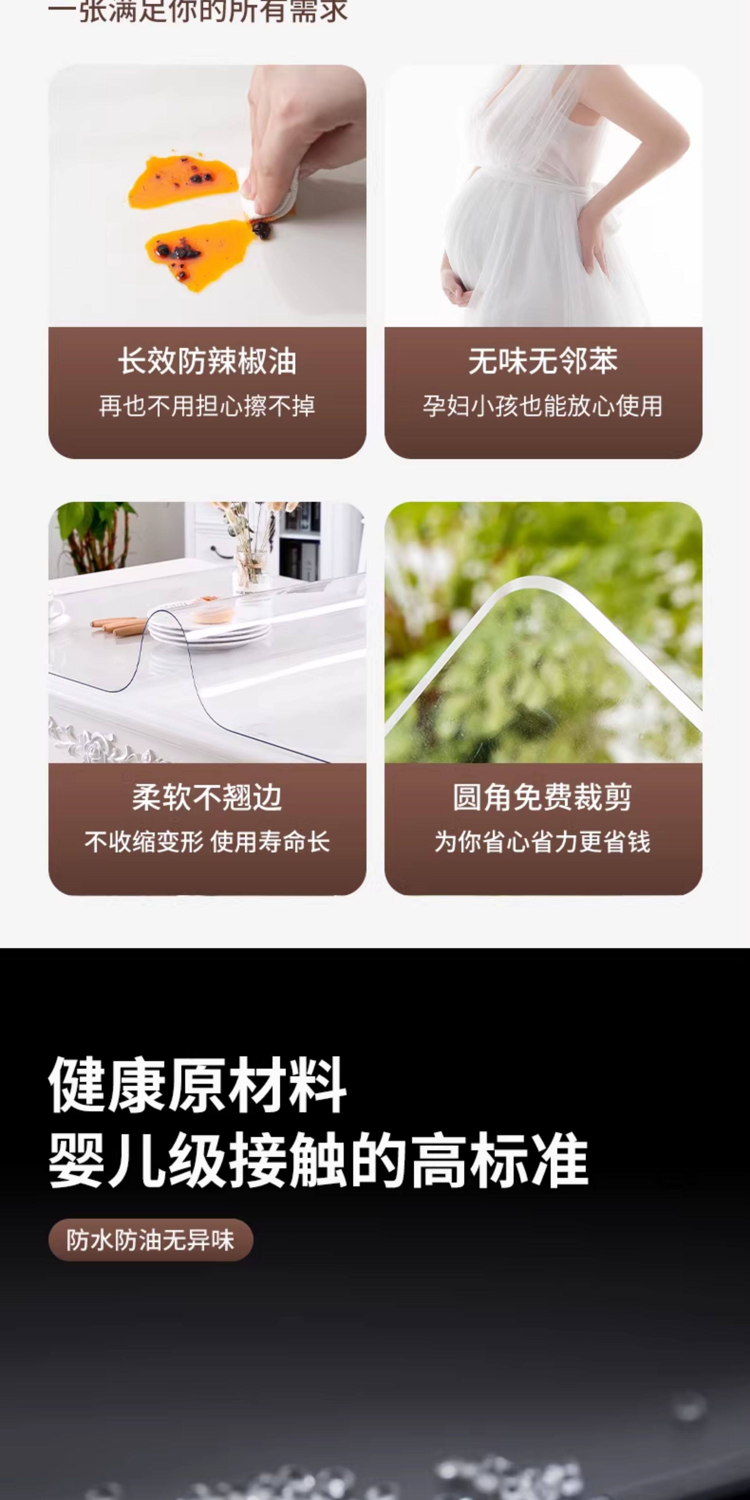 新增款【透明】母婴级抗菌防烫防油120°磨边