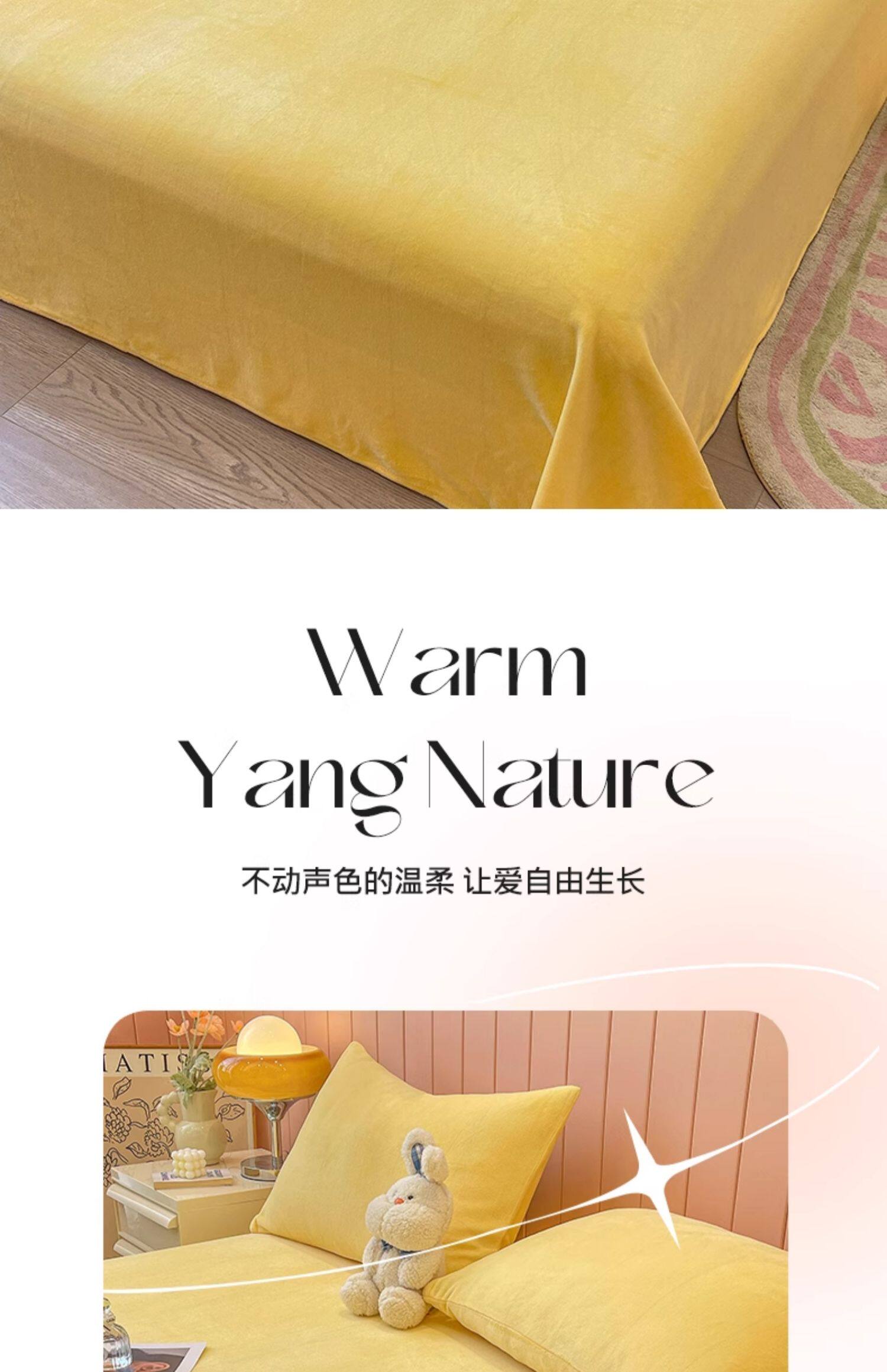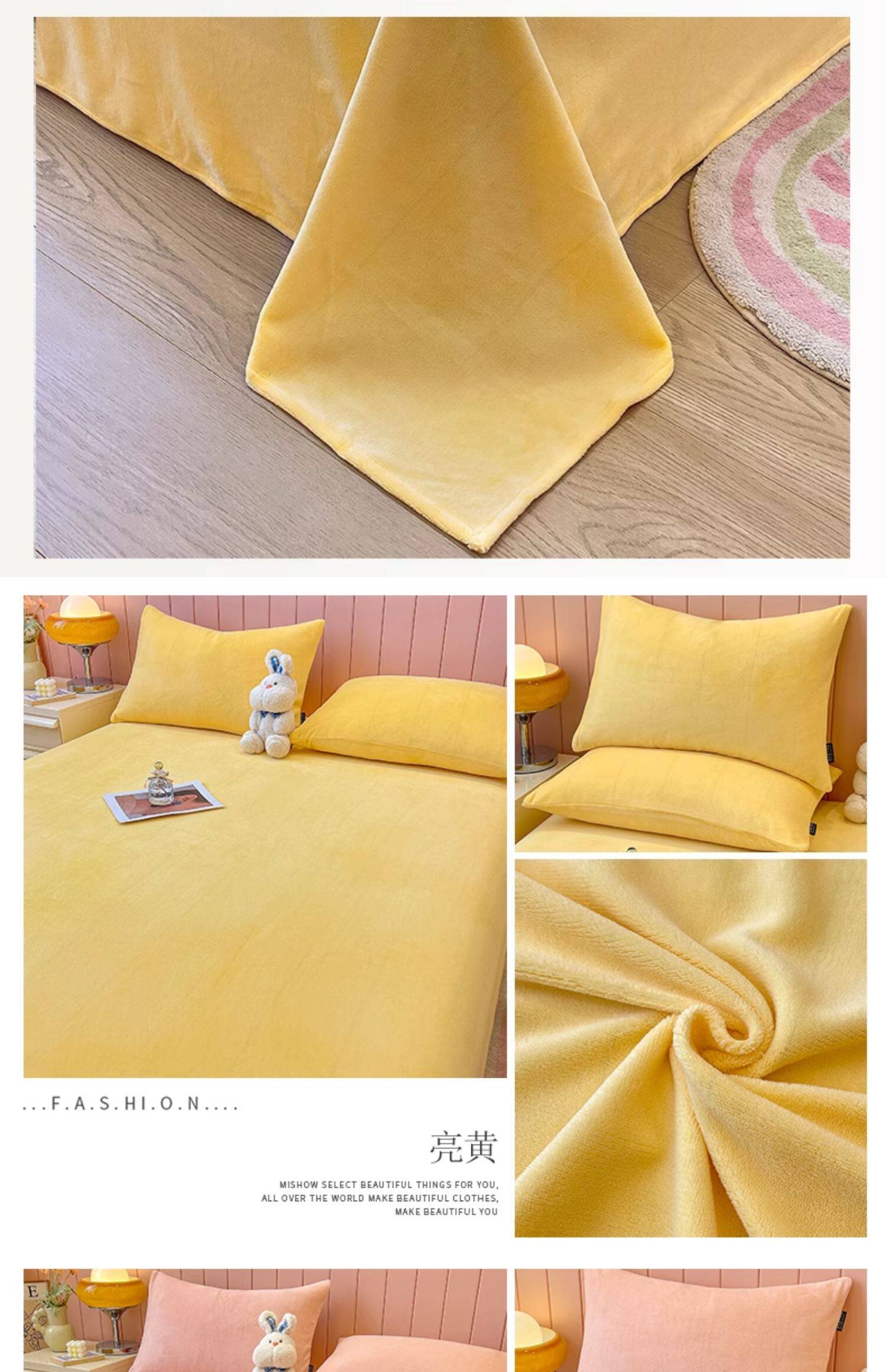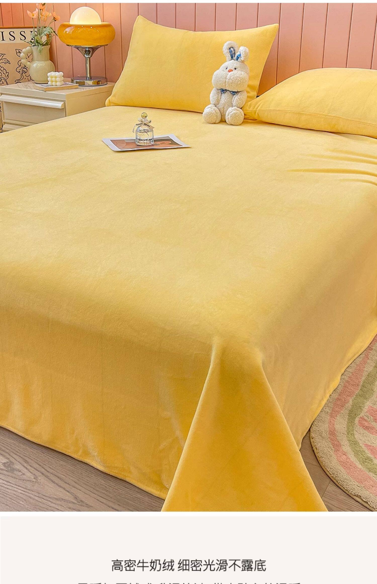 冬季牛奶绒珊瑚绒床单单件学生宿舍单双人加厚黄色被单床笠三件套