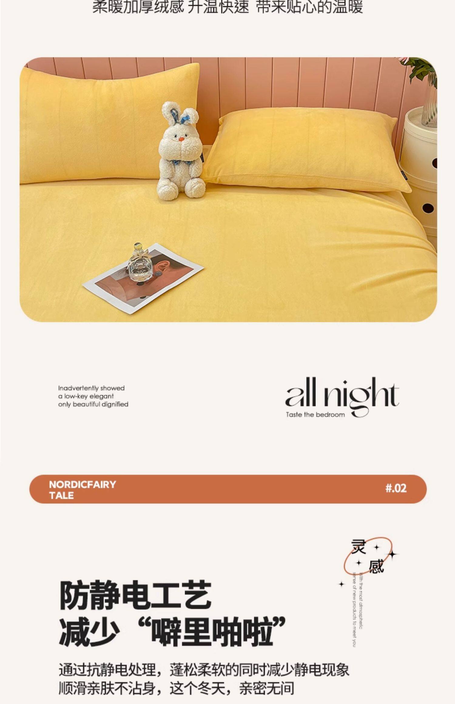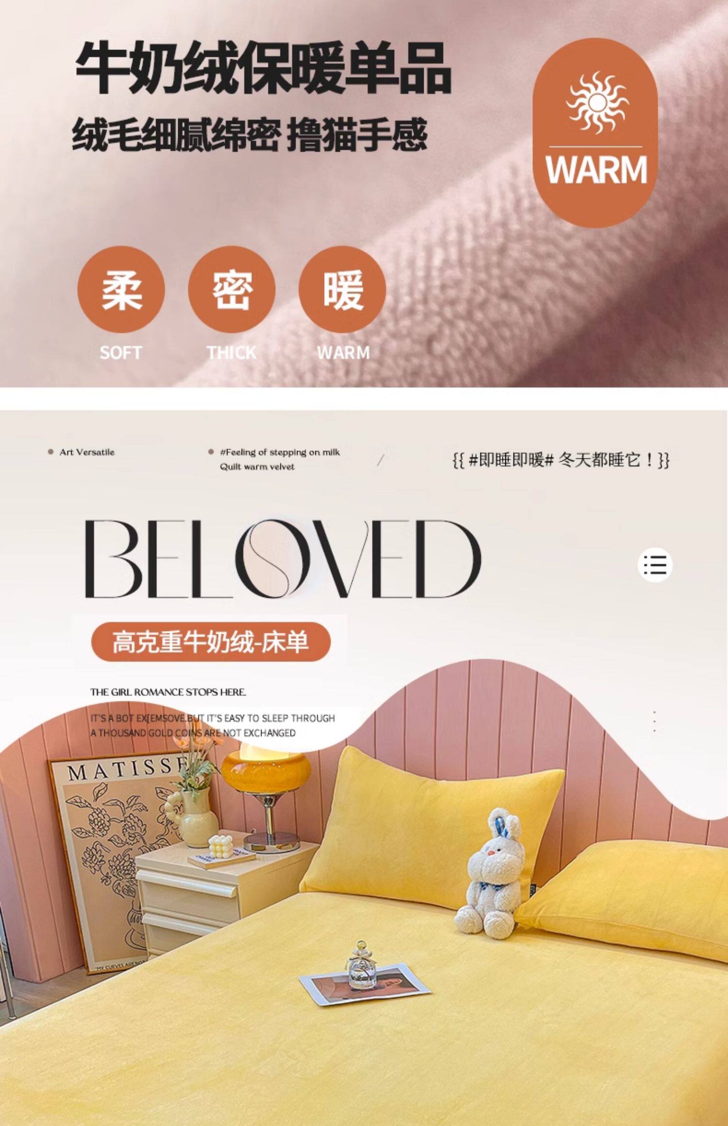 ★ 【加厚牛奶绒床笠三件套】180x200cm床笠+枕套一对