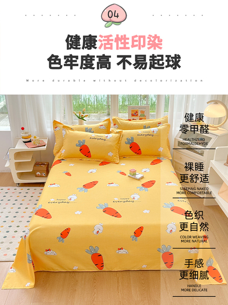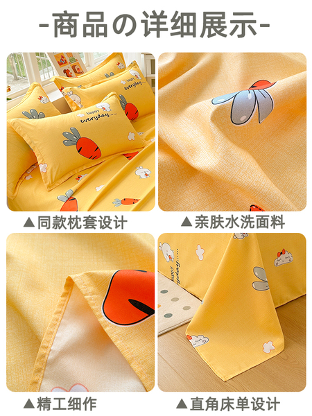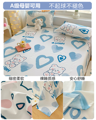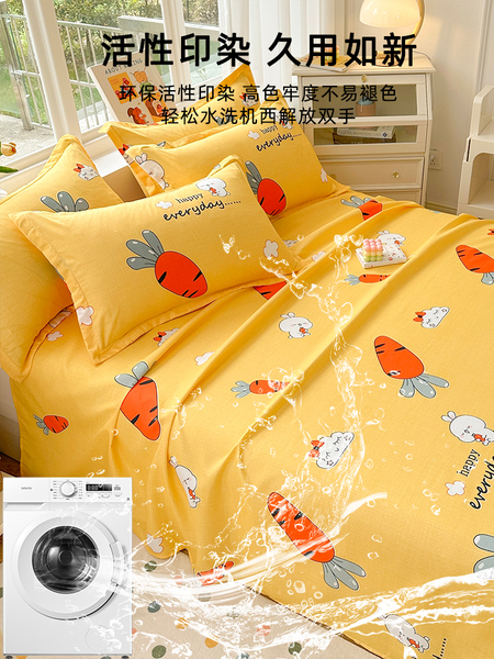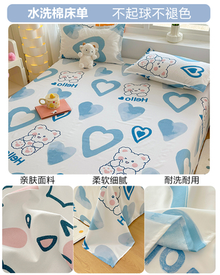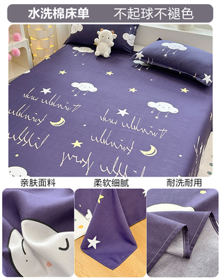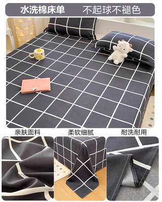 水洗棉床单单件四季通用宿舍被单180x200非纯棉100全棉被单三件套