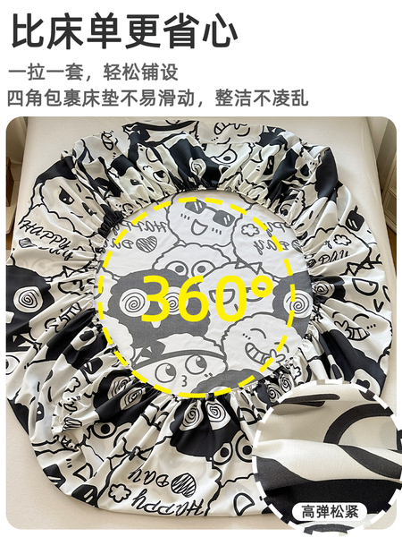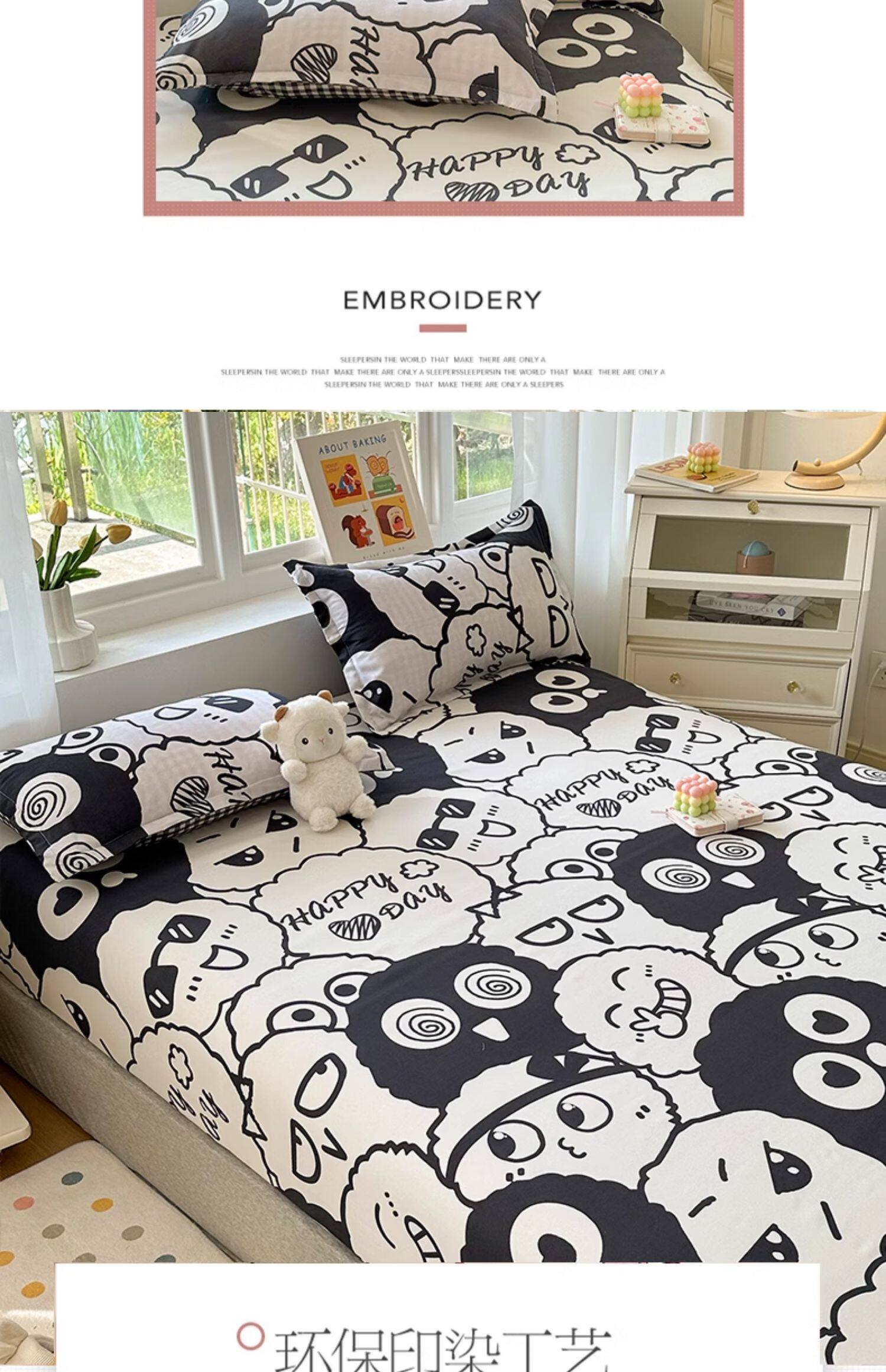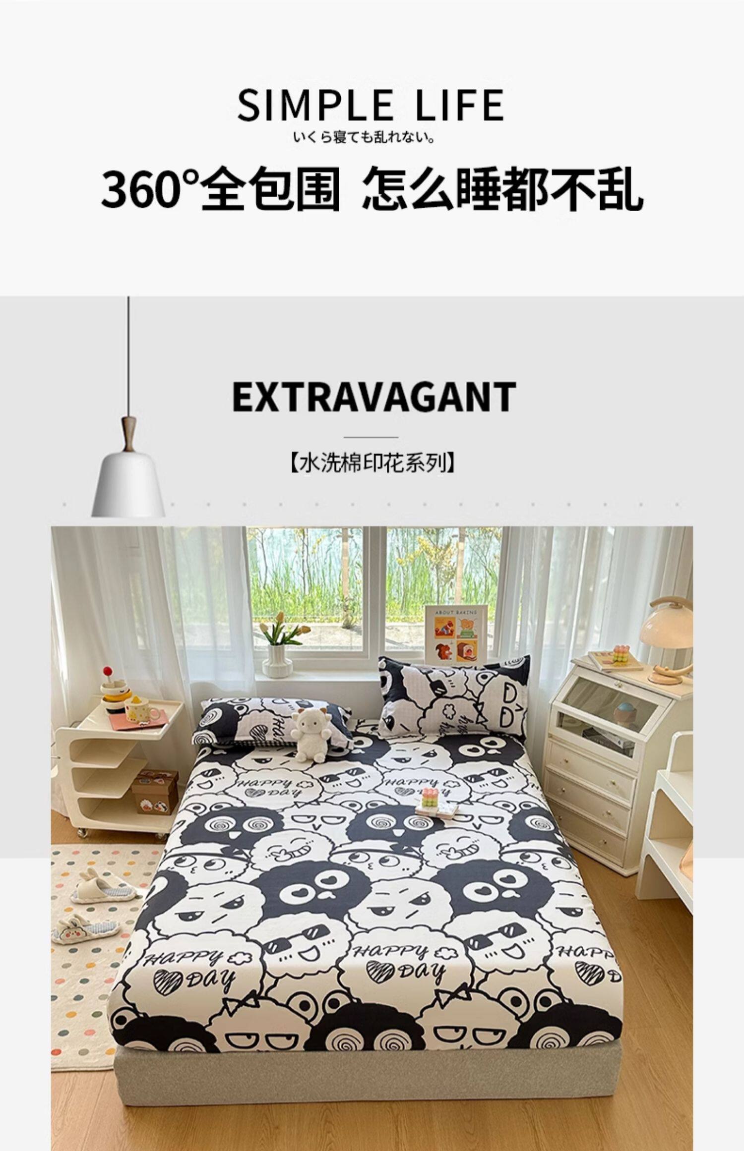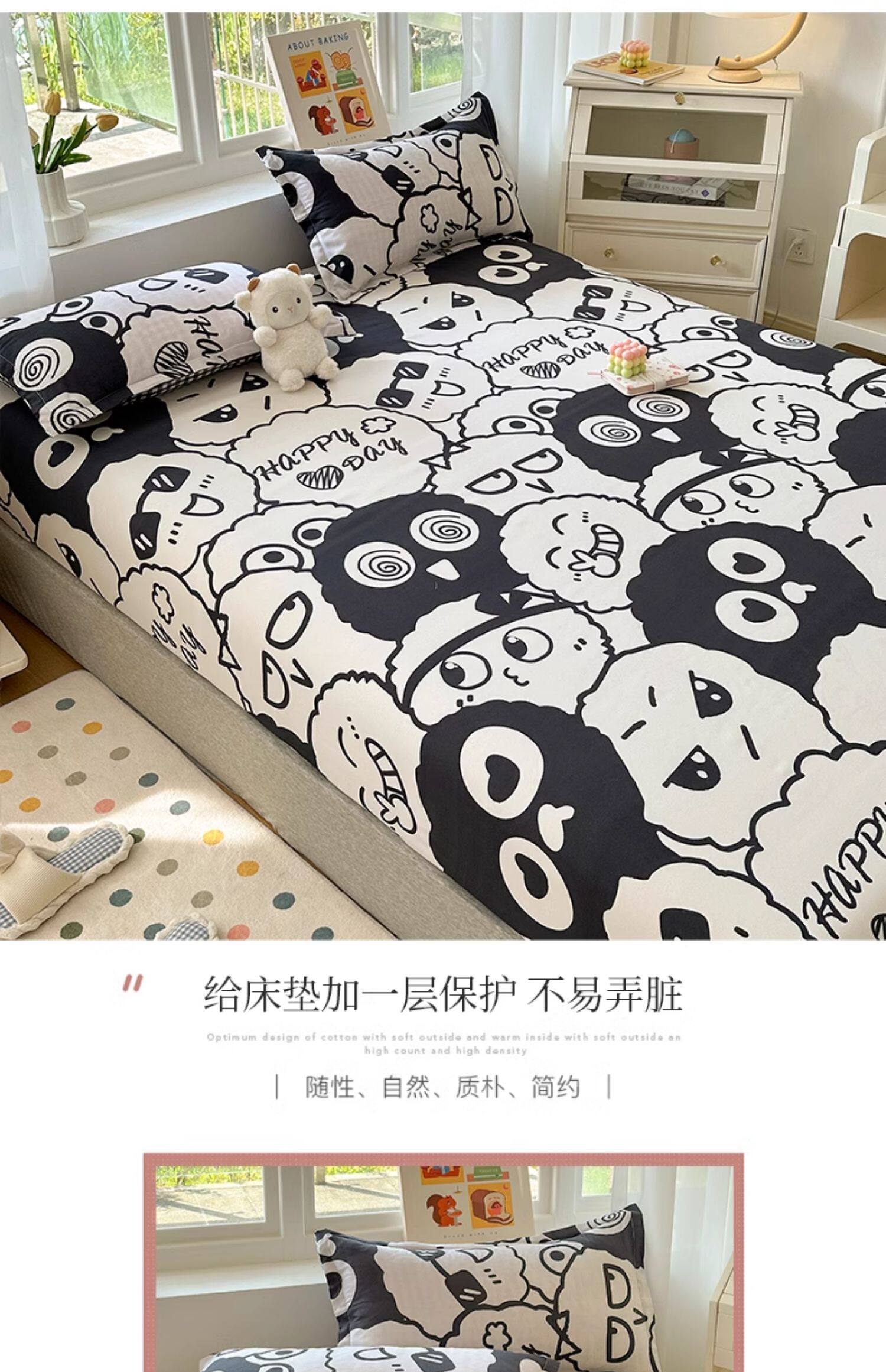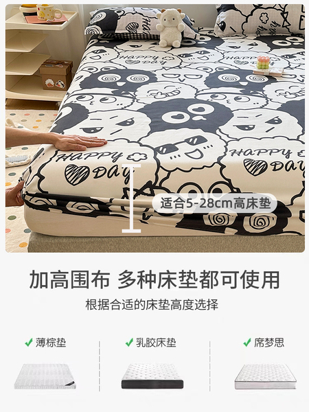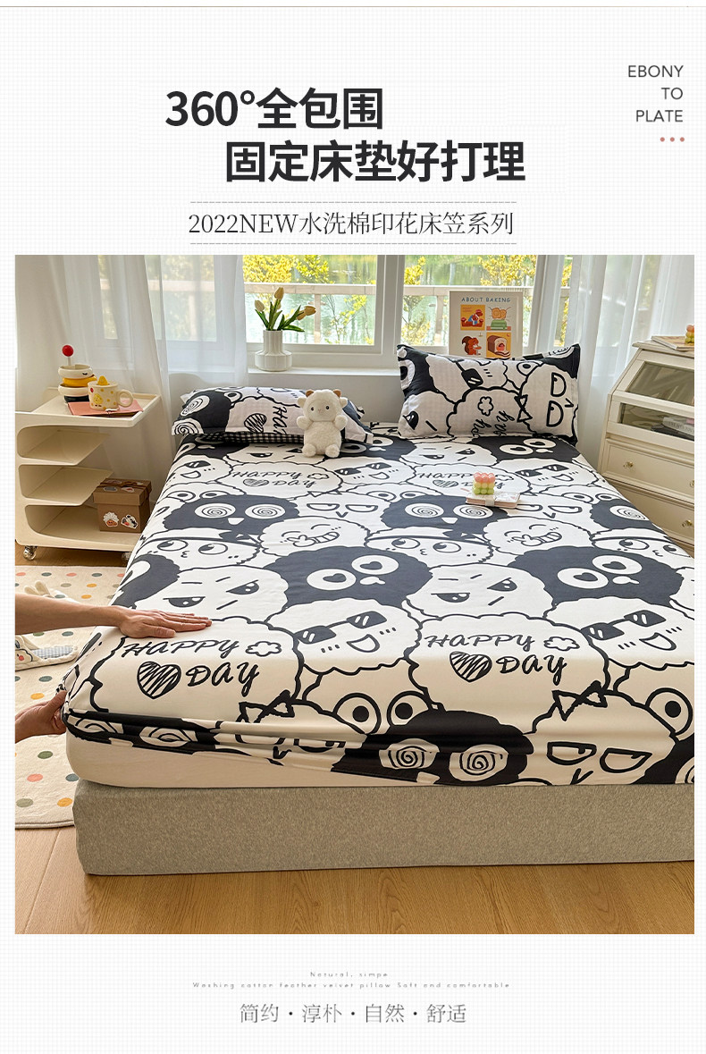 水洗棉床笠床垫防尘罩床套宿舍单人卡通印花席梦思床罩全包床单套