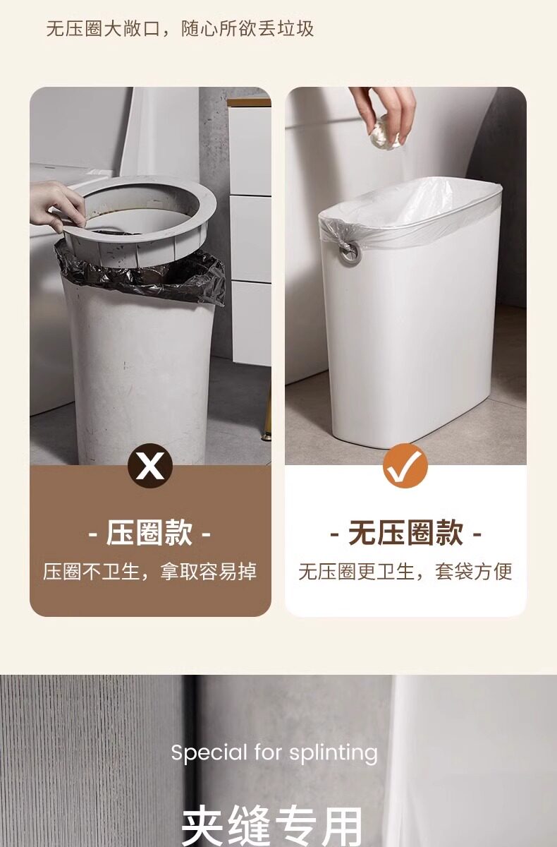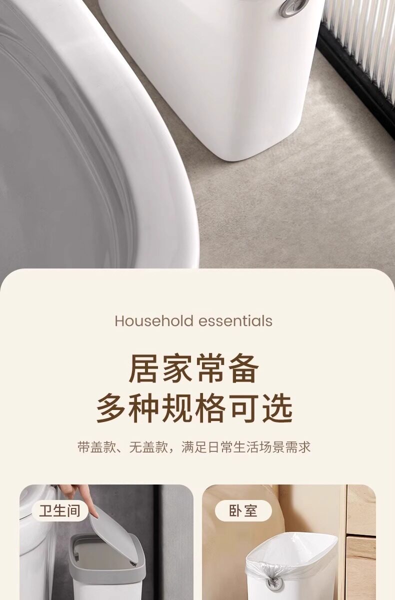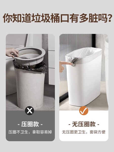 卫生间垃圾桶家用简约厨房带盖大小号客厅卧室厕所专用夹缝卫生桶