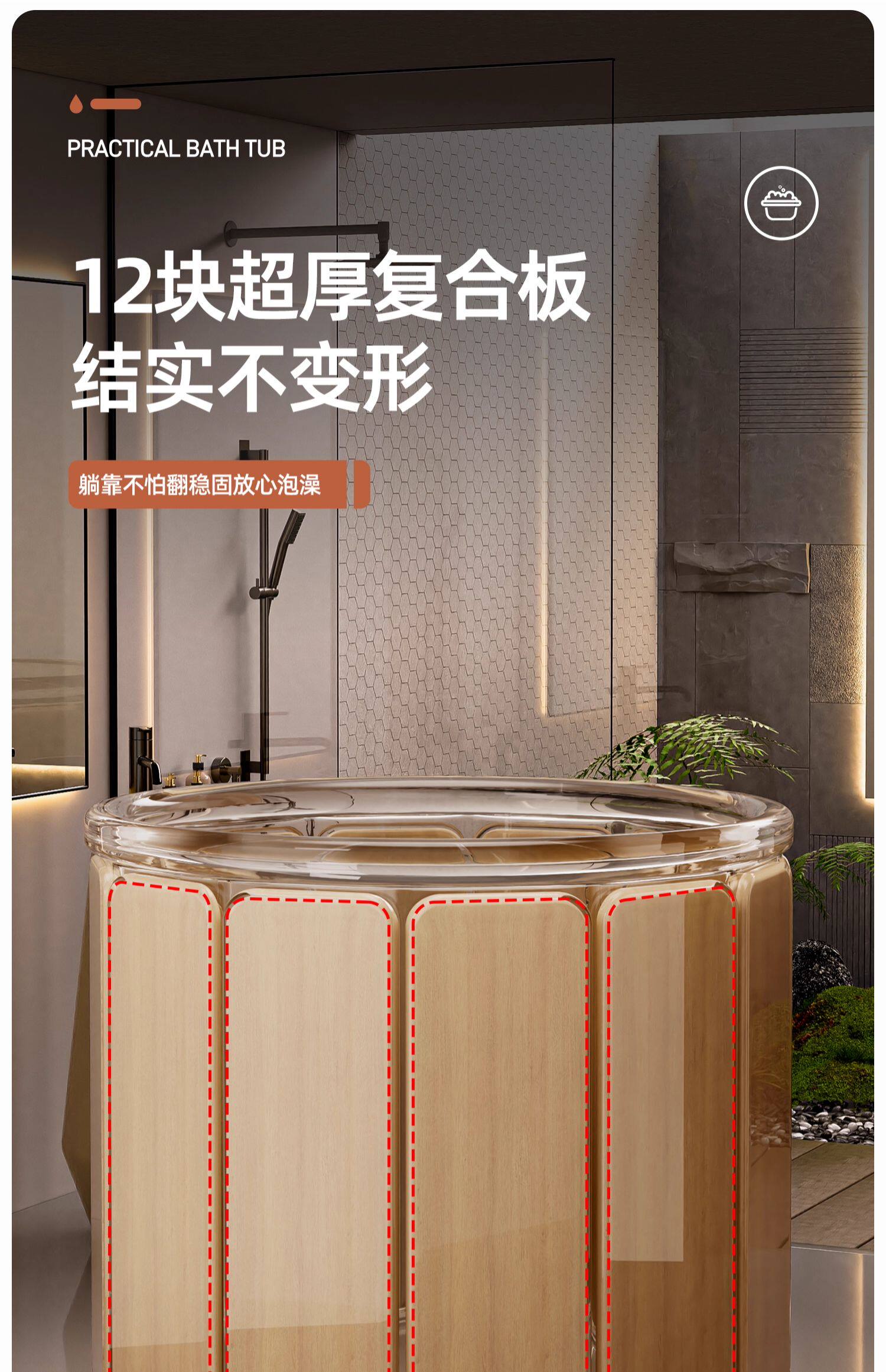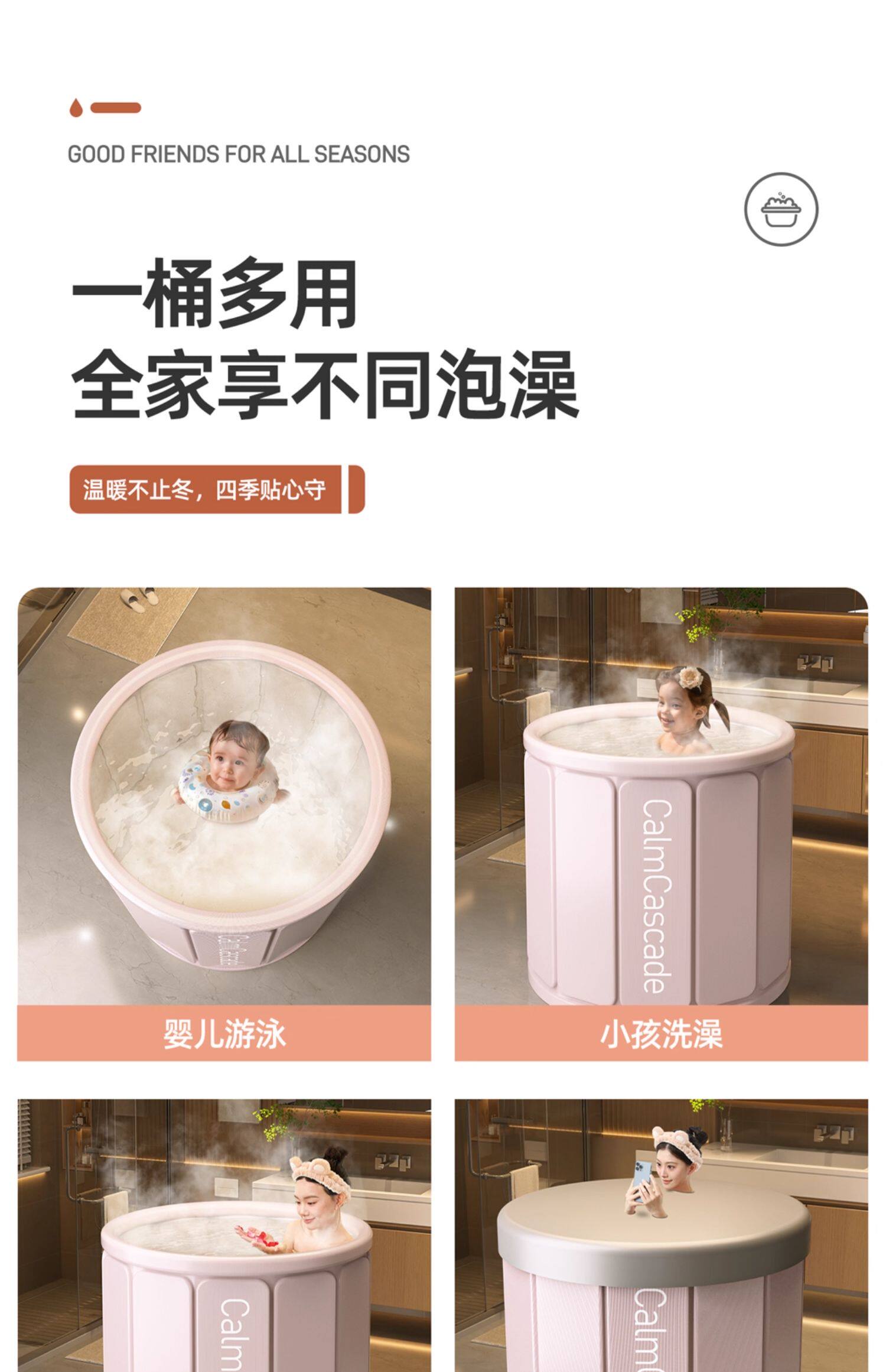 泡澡桶折叠浴缸大人浴桶家用成人全身洗澡桶沐浴桶加厚保温神器