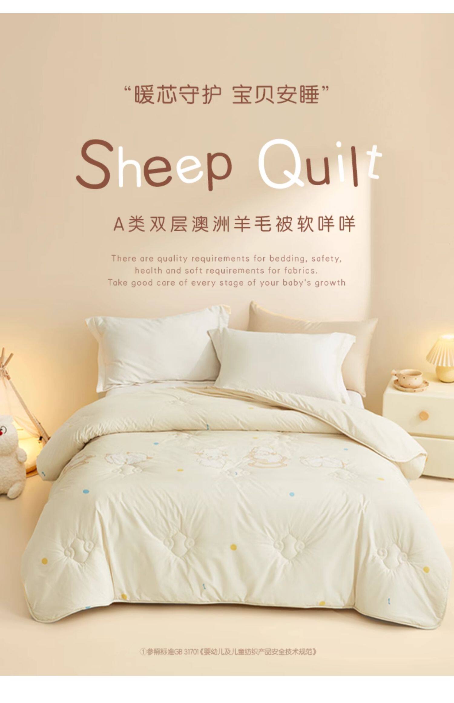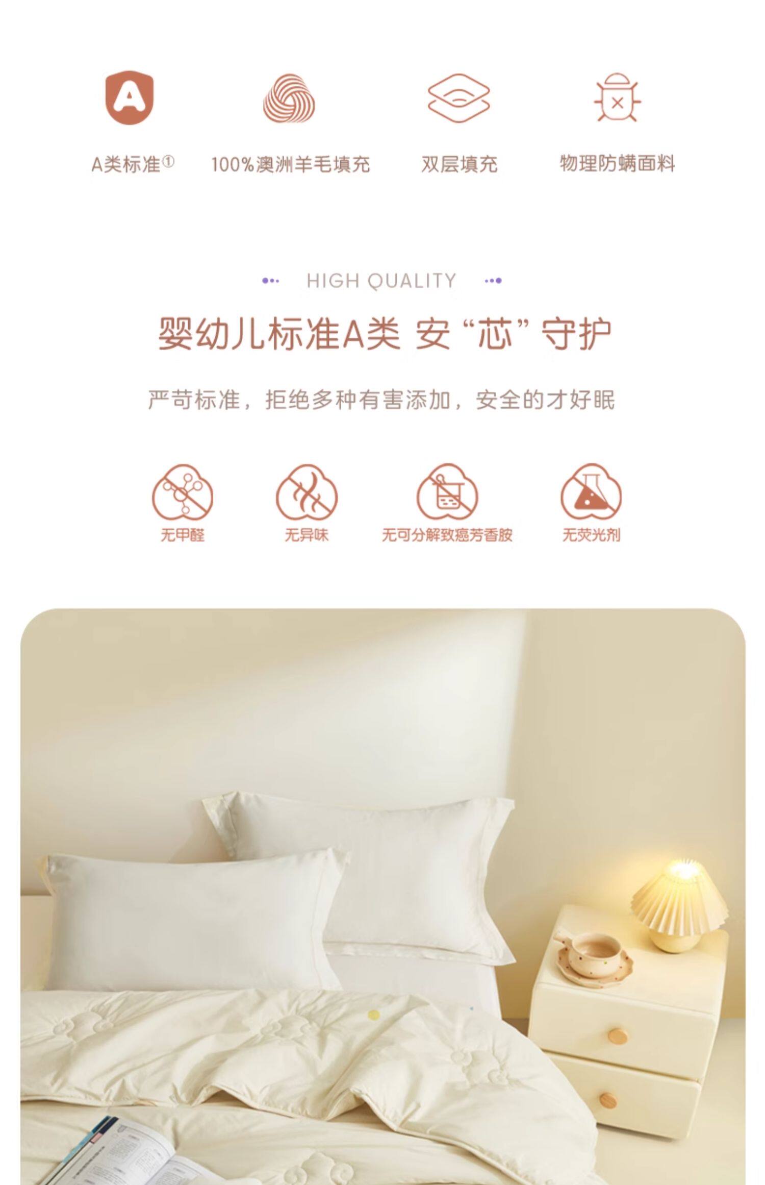 四季被【100%双层澳洲进口羊毛+婴幼儿A类+物理防螨】-软咩咩