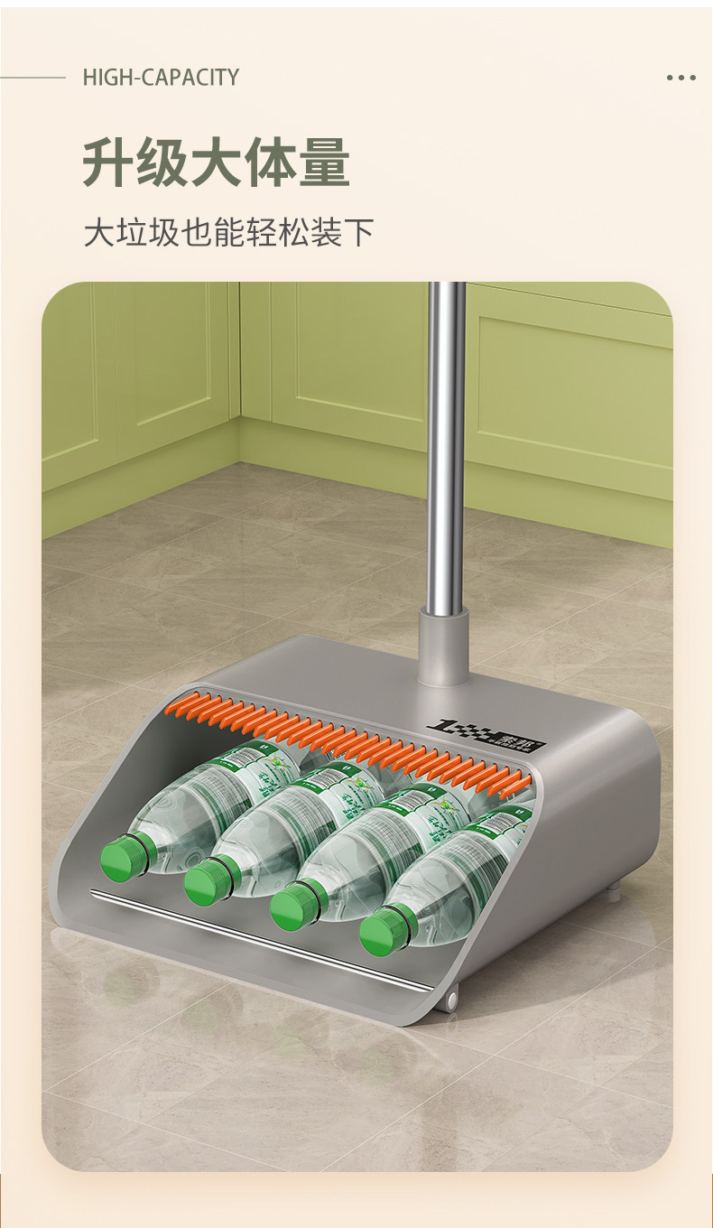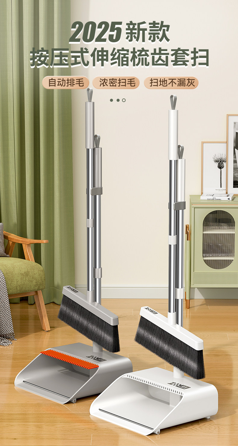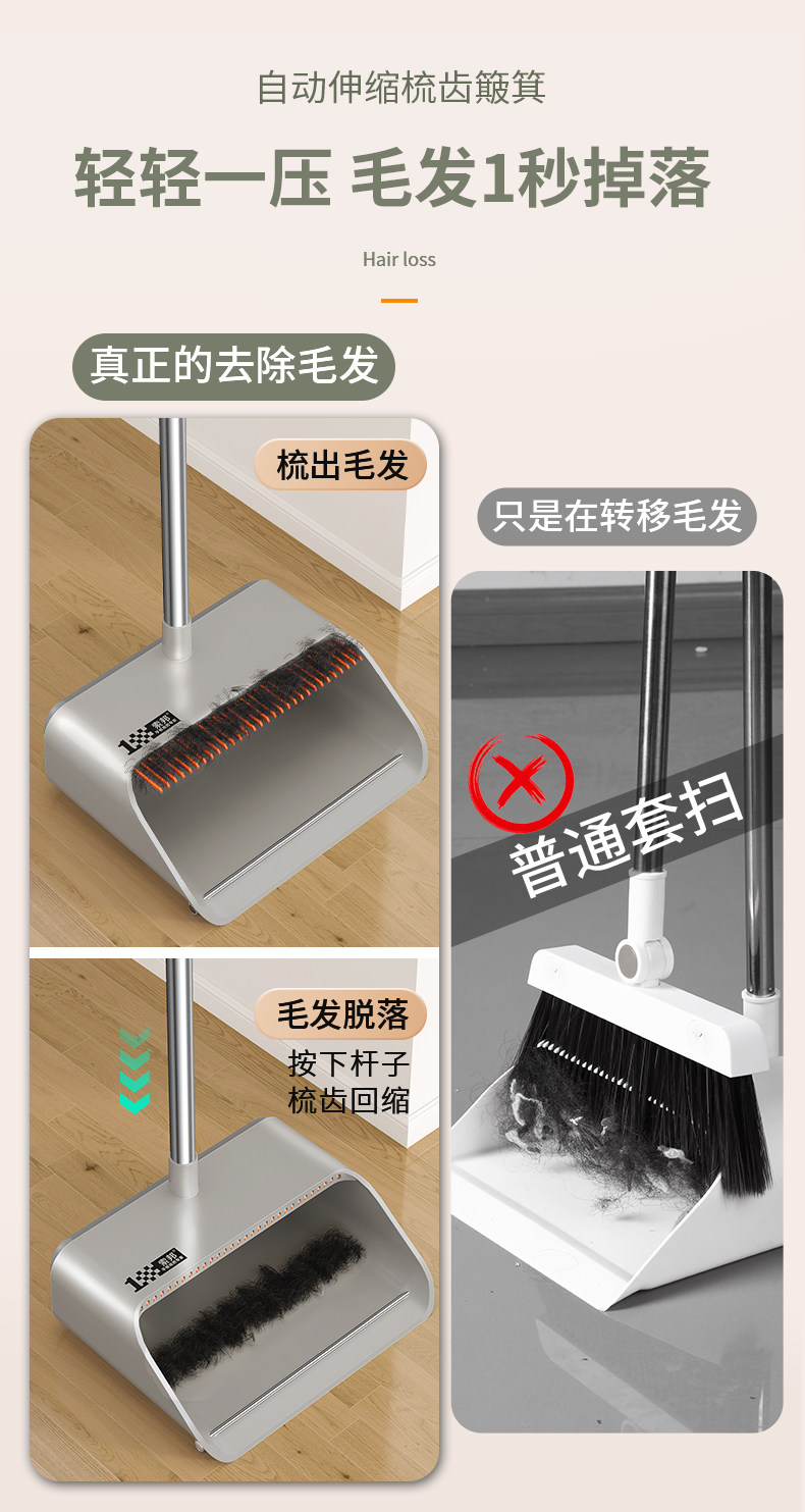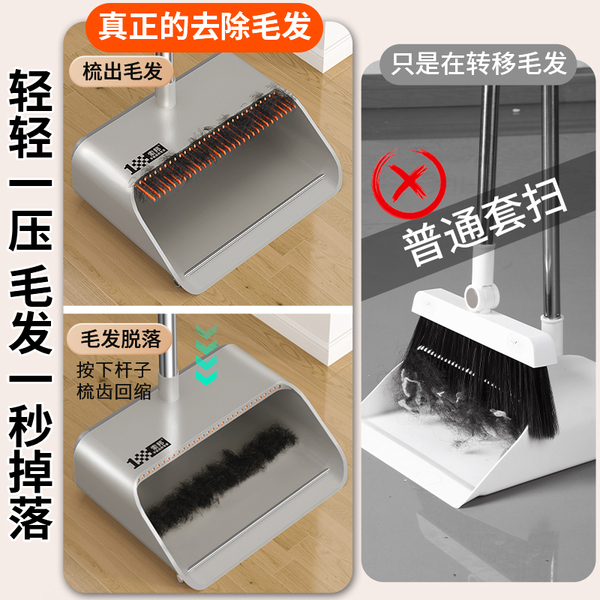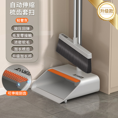 (2件套)轻奢灰【升级款自动回弹梳齿】扫帚+簸箕