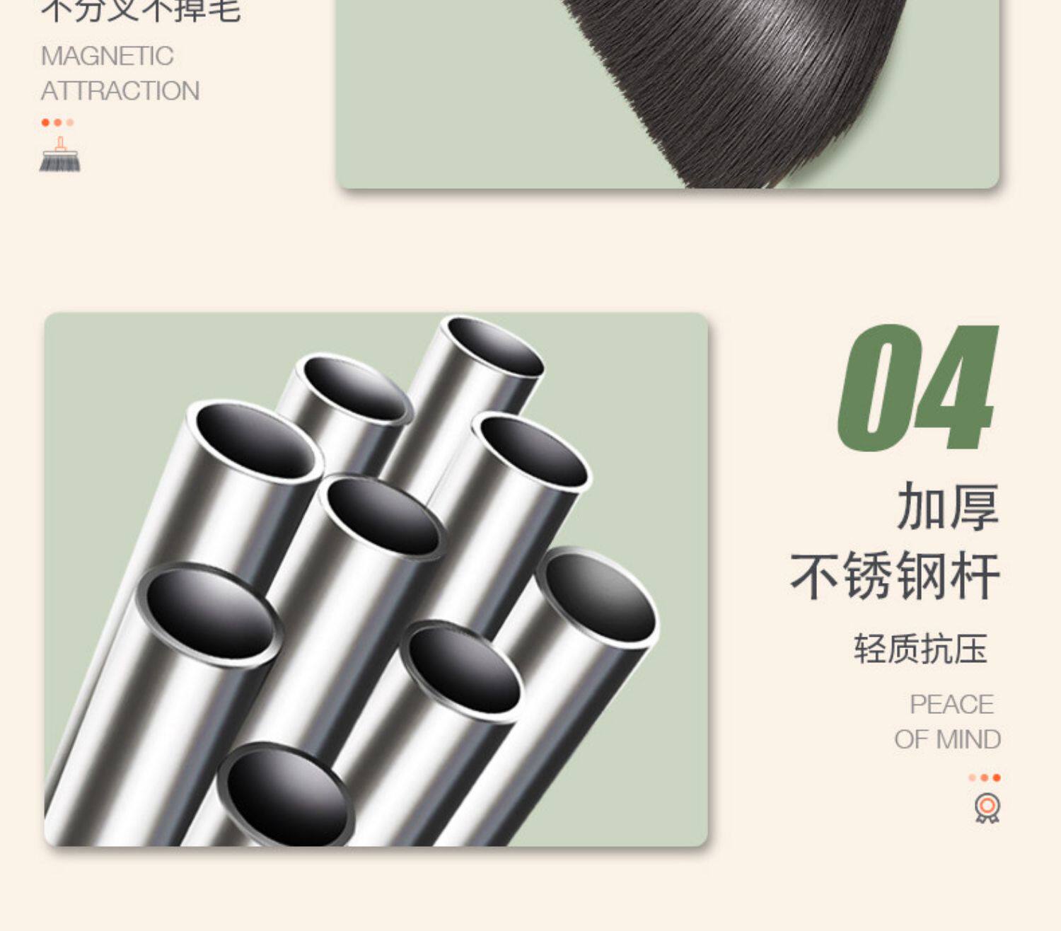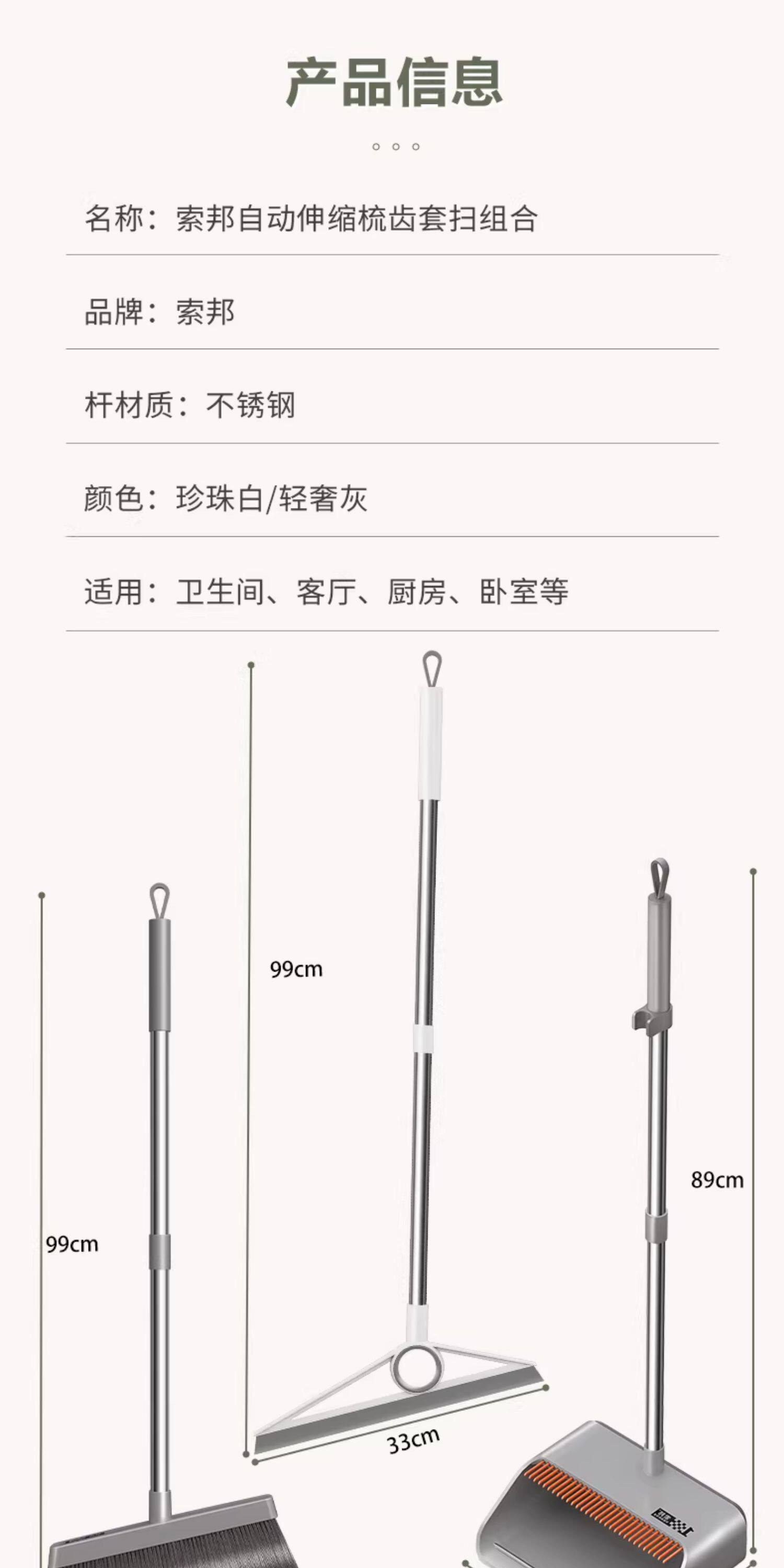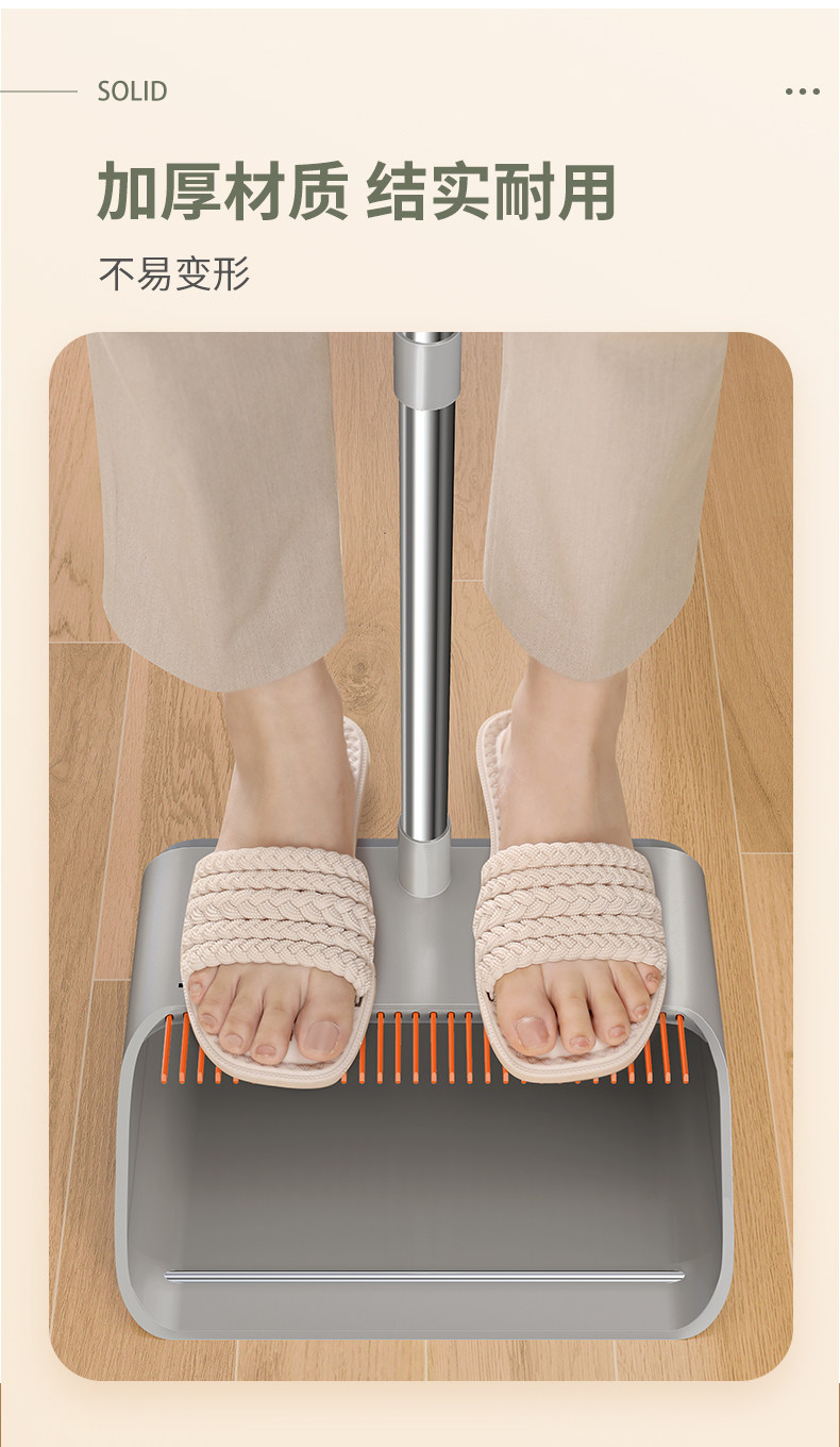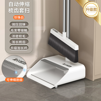 (3件套)珍珠白【自动回弹梳齿】扫帚+簸箕+魔术扫把