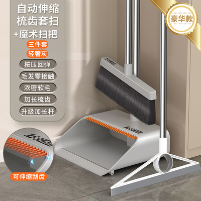 (3件套)轻奢灰【自动回弹梳齿】扫帚+簸箕+魔术扫把