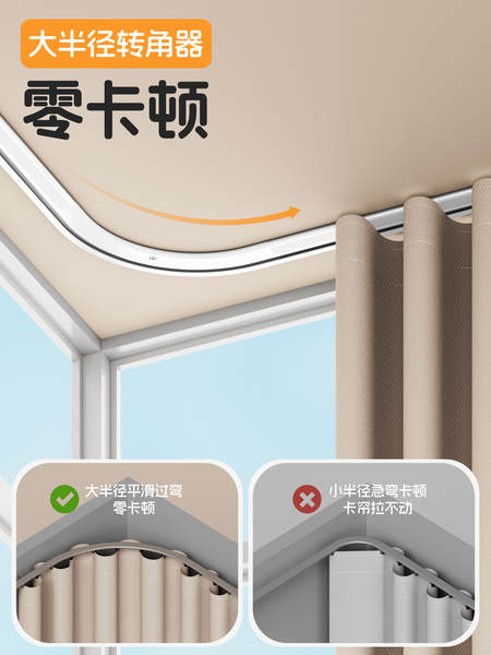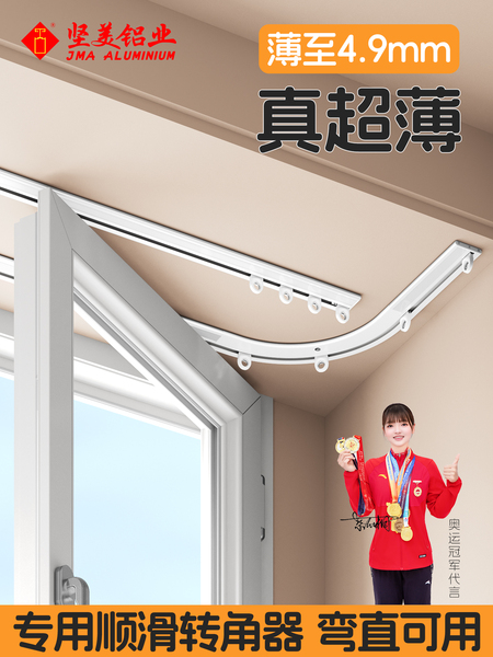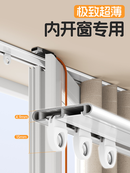 超薄窗帘轨道静音窗帘杆内开窗滑道铝合金隐形顶装导轨免打孔滑轨