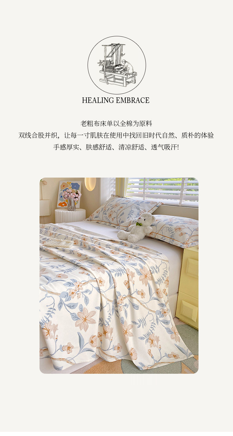 繁花【已质检:100%全棉老粗布丨A类新疆长绒棉】