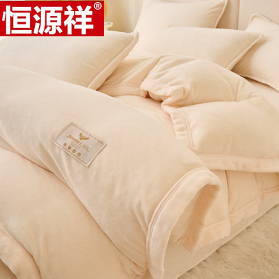 恒源祥冬季加绒珊瑚绒被套单件加厚双面毛绒冬天法兰绒牛奶绒被罩