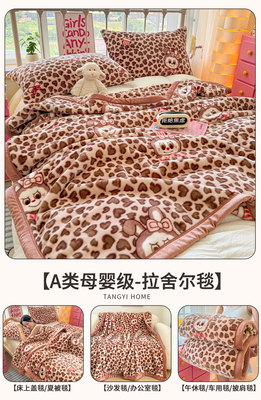 拉舍尔云毯-豹纹小布-咖【蓄热保暖 可机洗 不滑被】