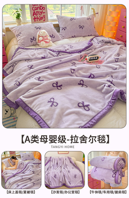 拉舍尔云毯-蝴蝶结-紫【蓄热保暖 可机洗 不滑被】