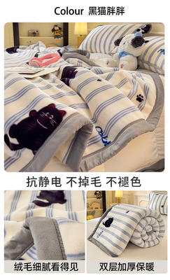 拉舍尔云毯-黑猫胖胖【蓄热保暖 可机洗 不滑被】