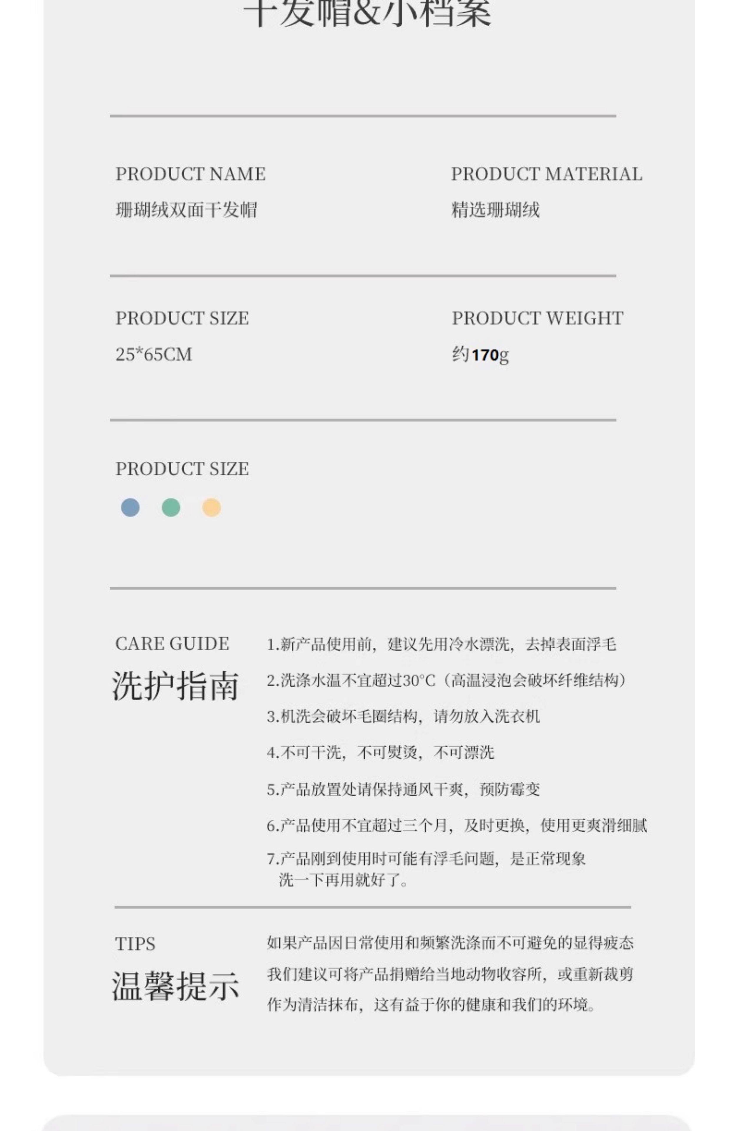 双层加厚干发帽【雾蓝色】秋冬款 重 165g