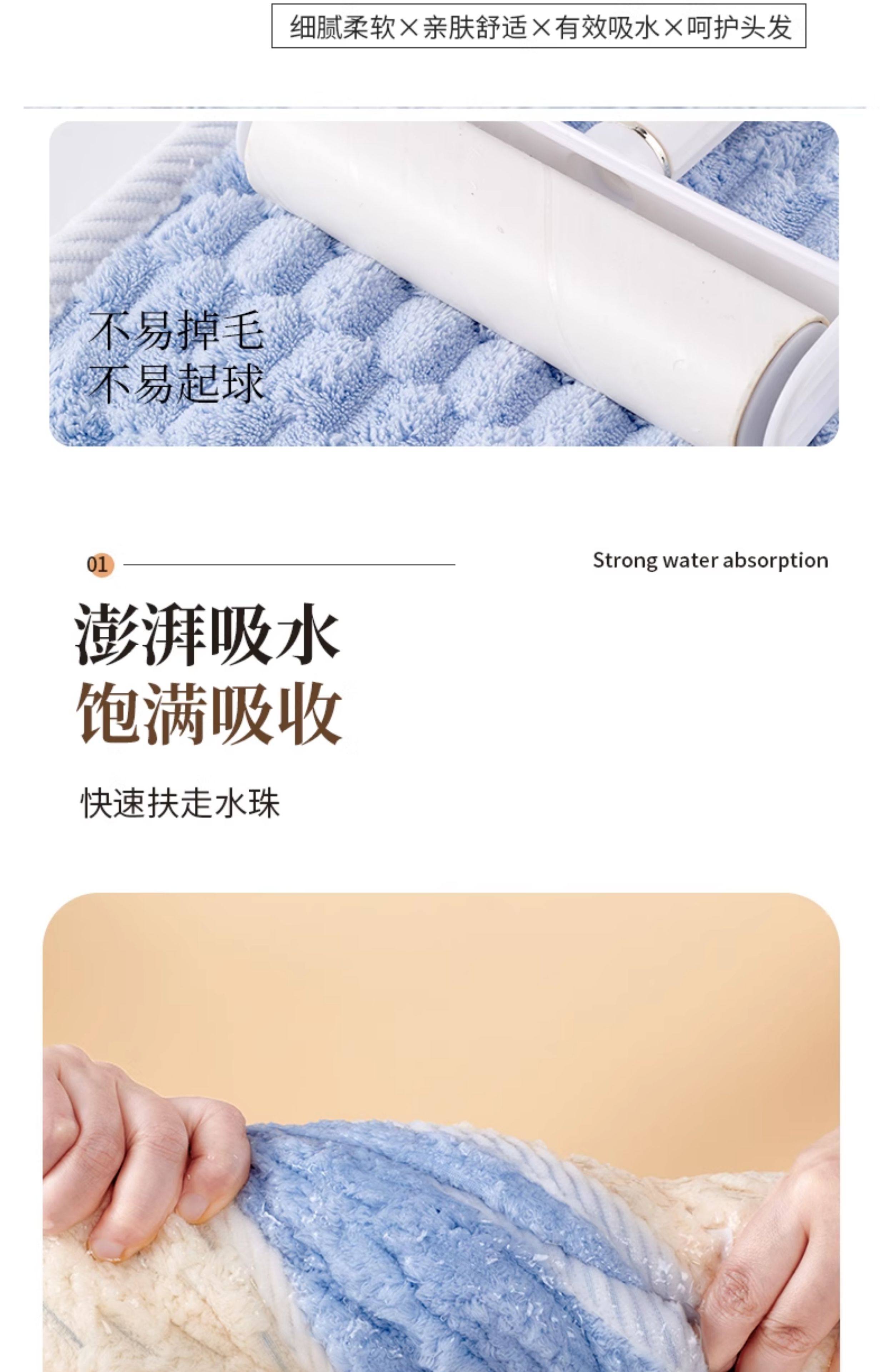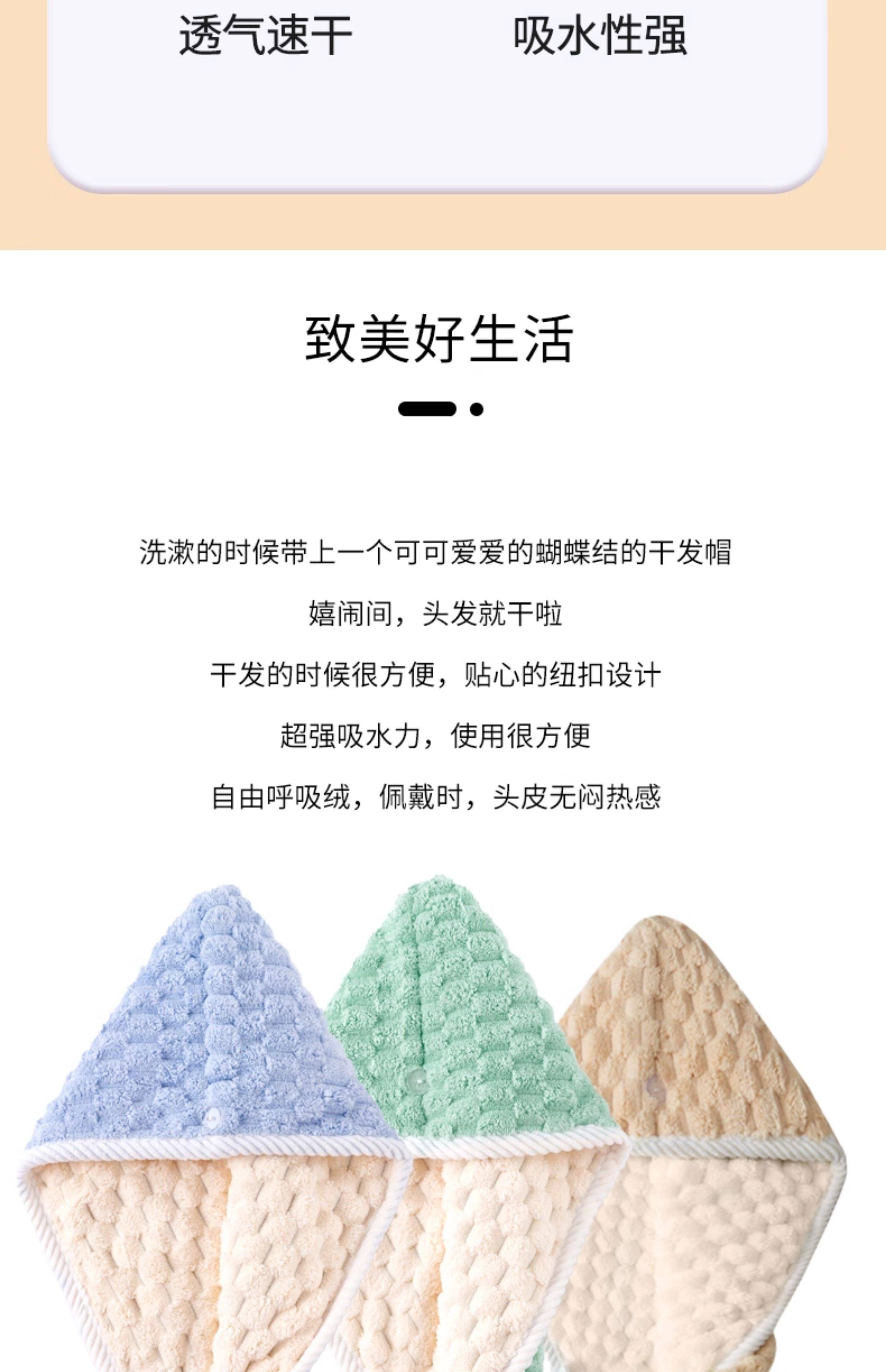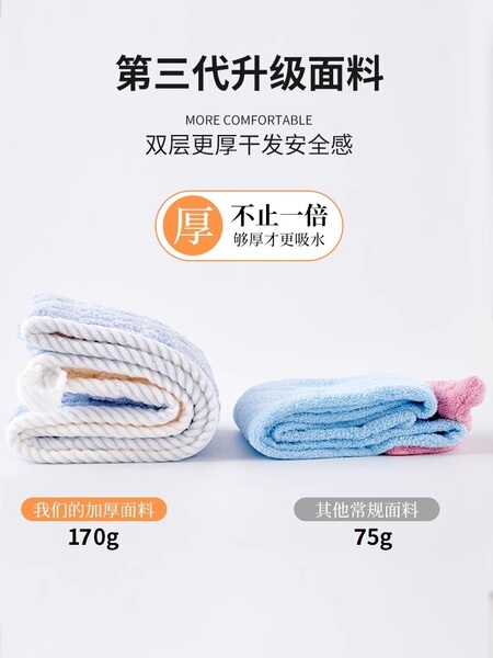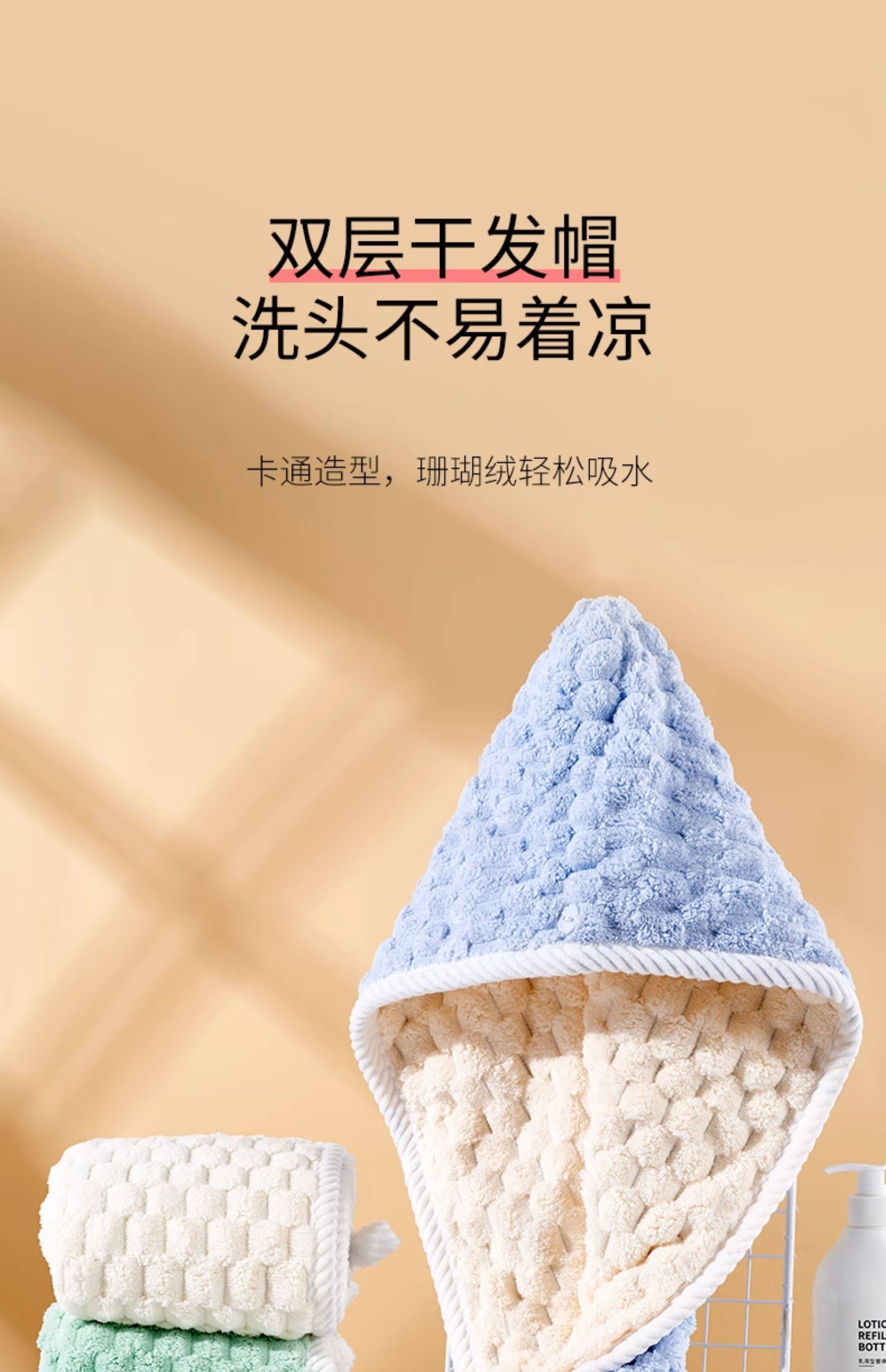 双层干发帽【卡白色】新升级三代绒毛纱 吸水快
