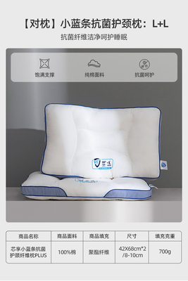 对枕(6-8cm)【纯棉面料+抗菌洁净+护颈支撑】芯享小蓝条PLUS