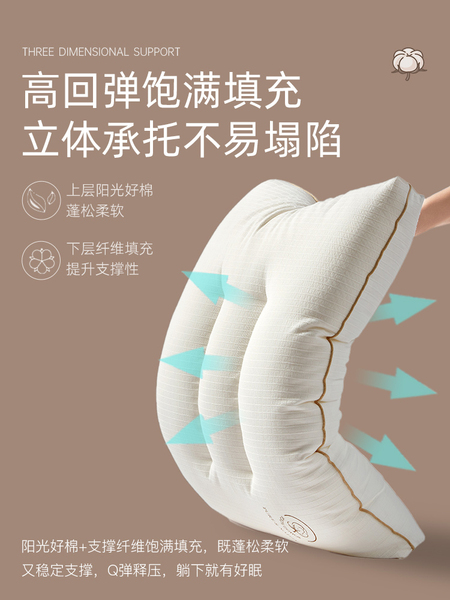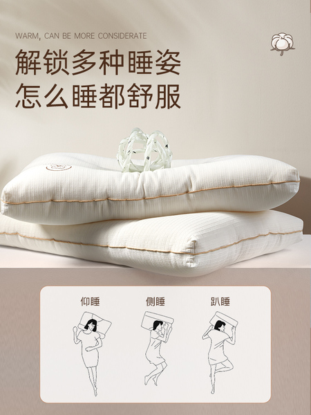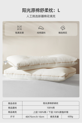 单枕(8-10cm)【填充新疆棉+100棉面料】阳光原棉舒柔枕