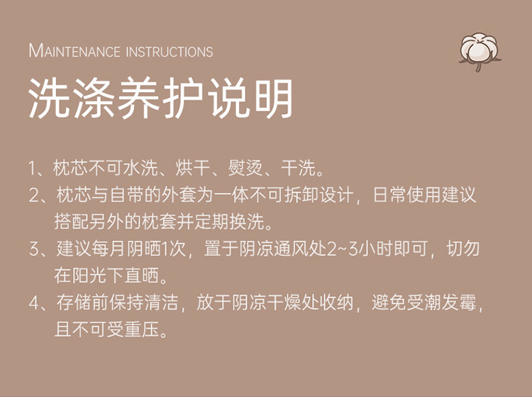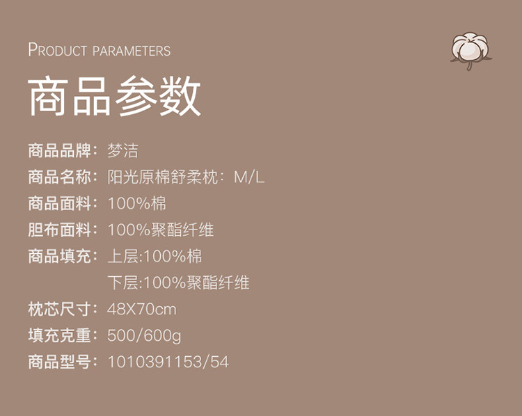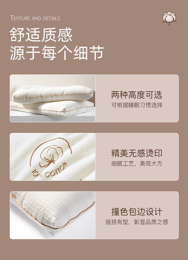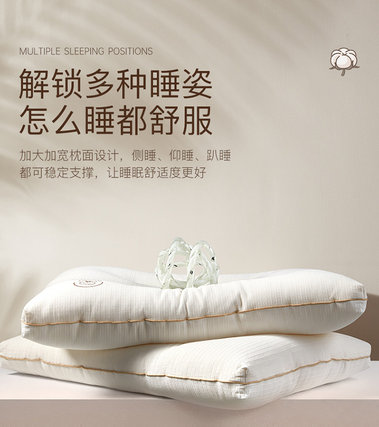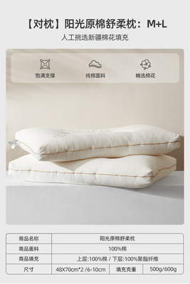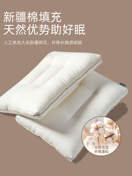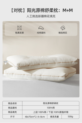 对枕(6-10cm)【新疆棉花填充+纯棉面料+柔软稳定支撑】阳光原棉舒柔枕