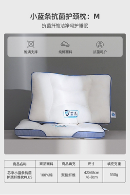 单枕(6-8cm)【纯棉面料+抗菌洁净+护颈支撑】芯享小蓝条PLUS