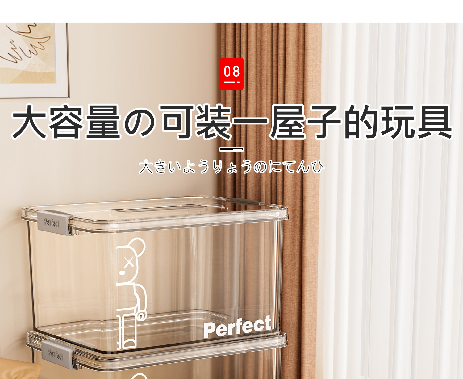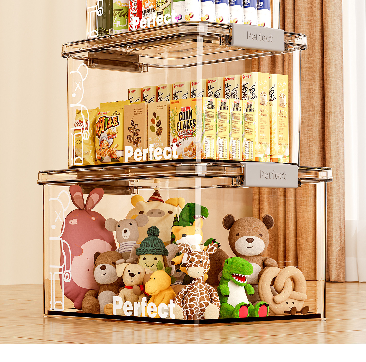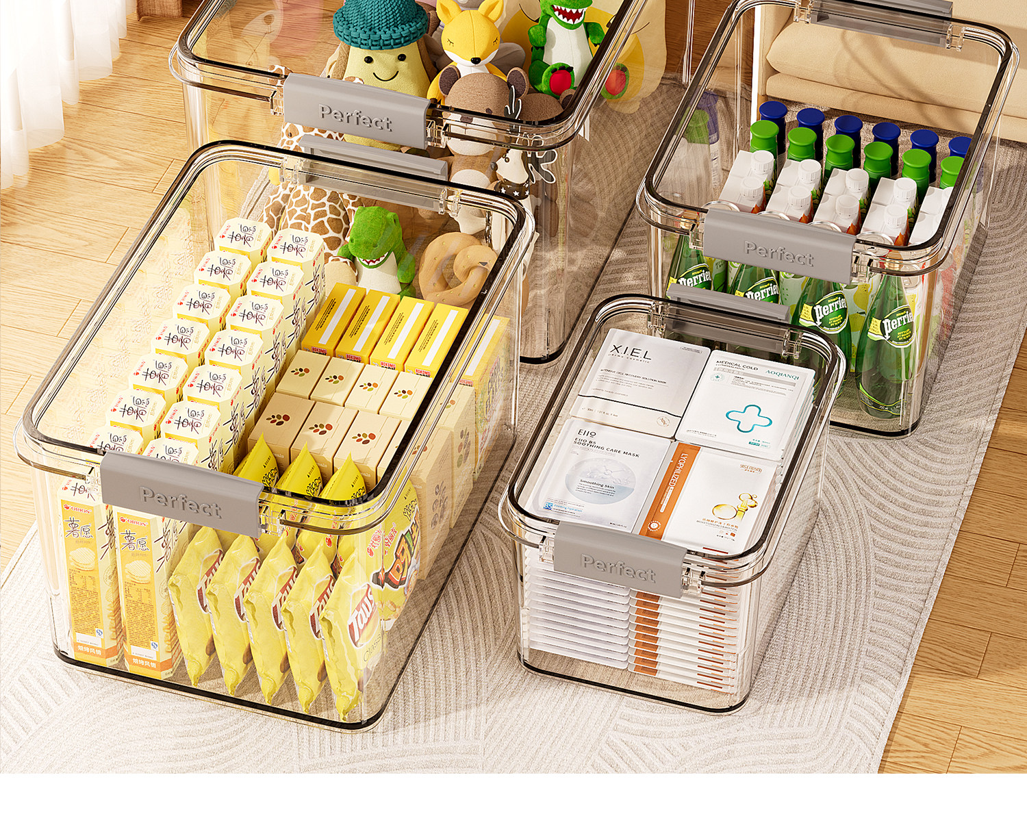 日本透明收纳盒玩具收纳箱零食储物盒密封带盖盒子塑料手提整理箱