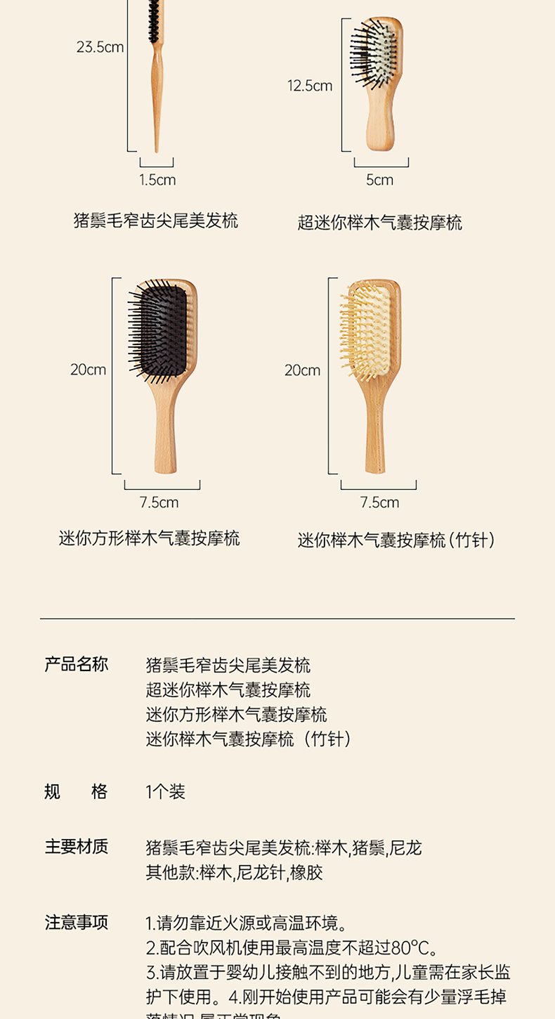 【买1送1】纤长榉木气囊梳+迷你榉木气囊梳