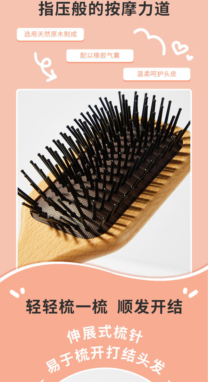 纤长天然榉木气囊按摩梳