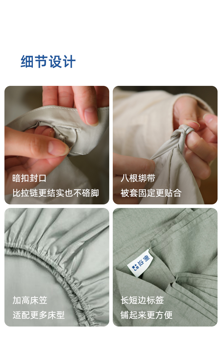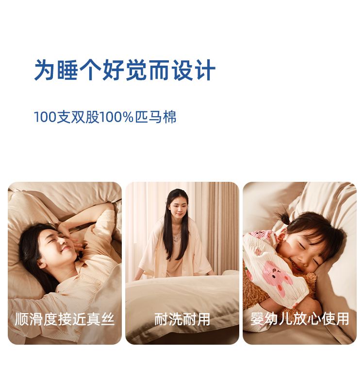 HUHU100支双股匹马棉四件套 100%SUPIMA四季款顺滑透气亲肤舒适