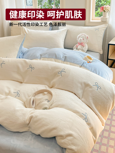 牛奶绒床上四件套法兰珊瑚绒被套2025新款秋冬床单加厚加绒三件套