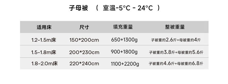 子母被220x240cm【适宜室温-5-24°C】