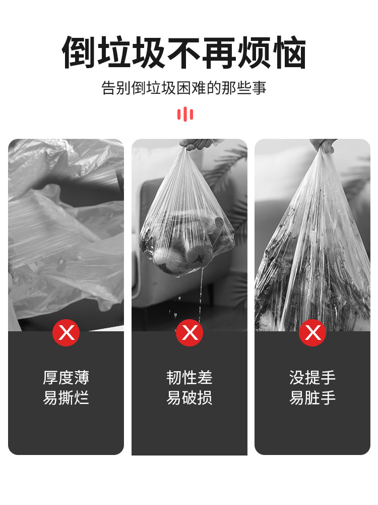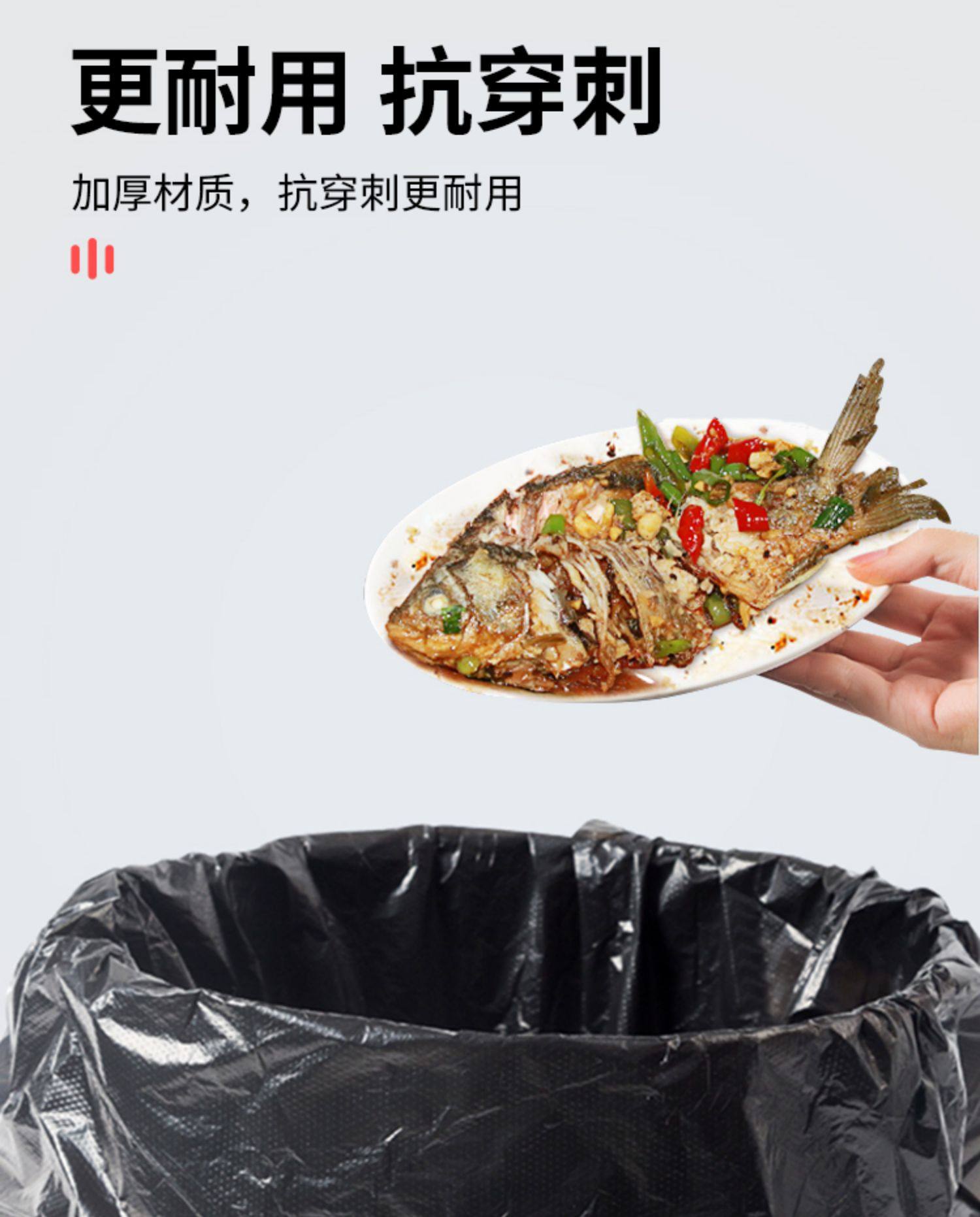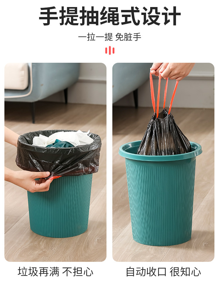 抽绳式垃圾袋家用加厚手提厨房宿舍用学生大号黑色塑料袋提拉收口