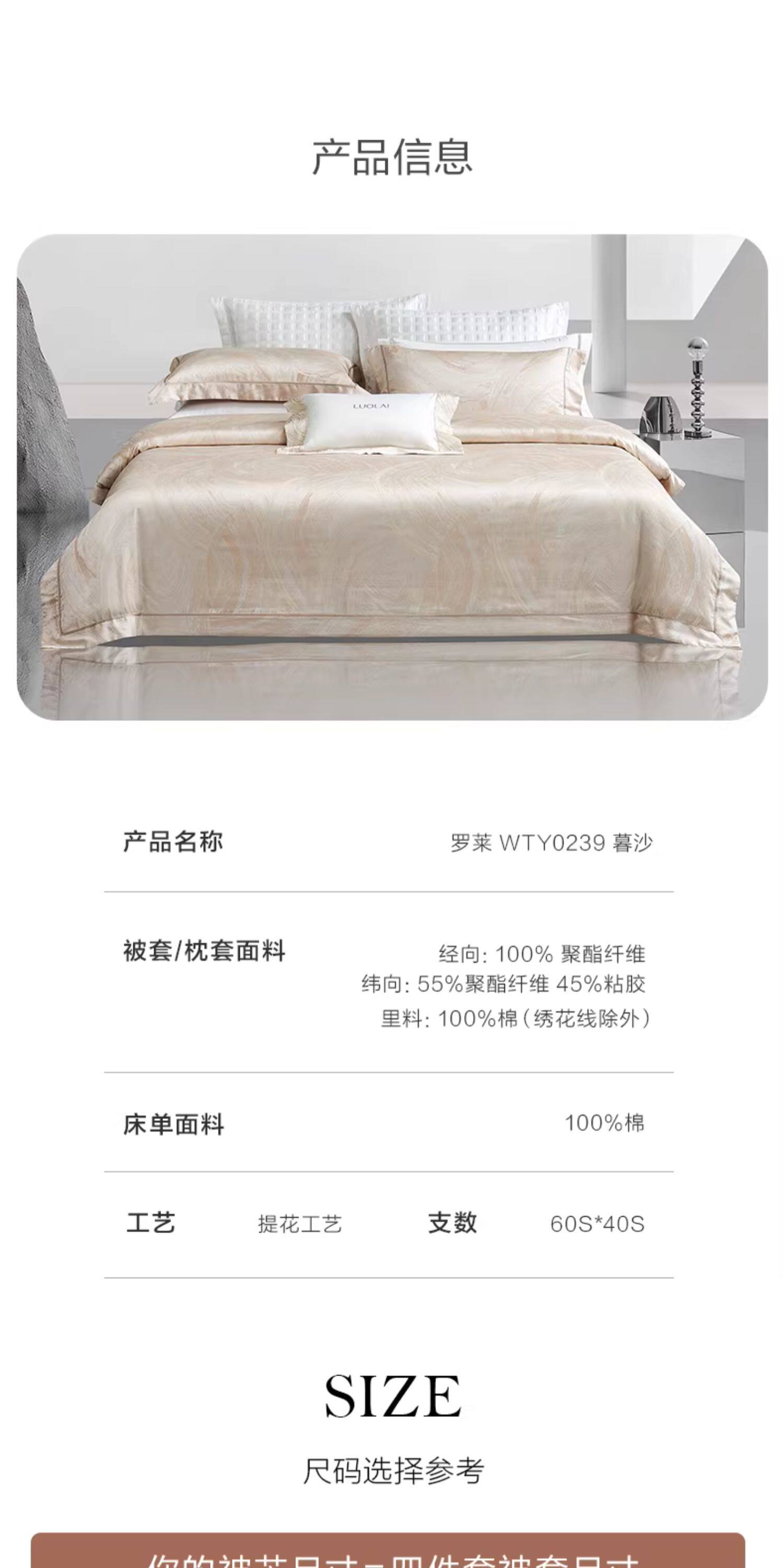 罗莱家纺提花套件四件套轻奢高级感简约床单高档被套被罩1.8m双人