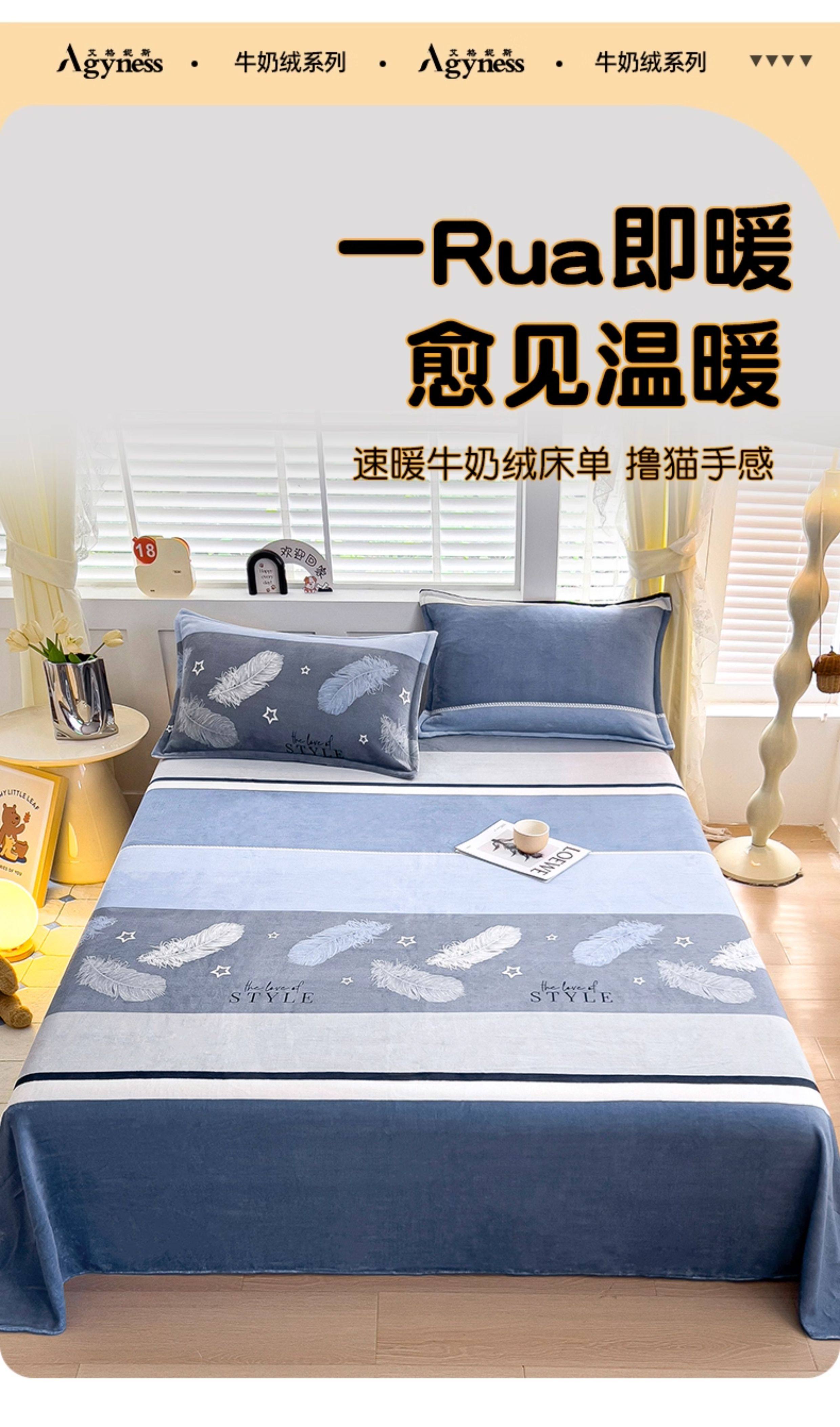 牛奶绒珊瑚绒床单单件加绒毛毯盖毯法兰绒加厚冬季宿舍单双人被单