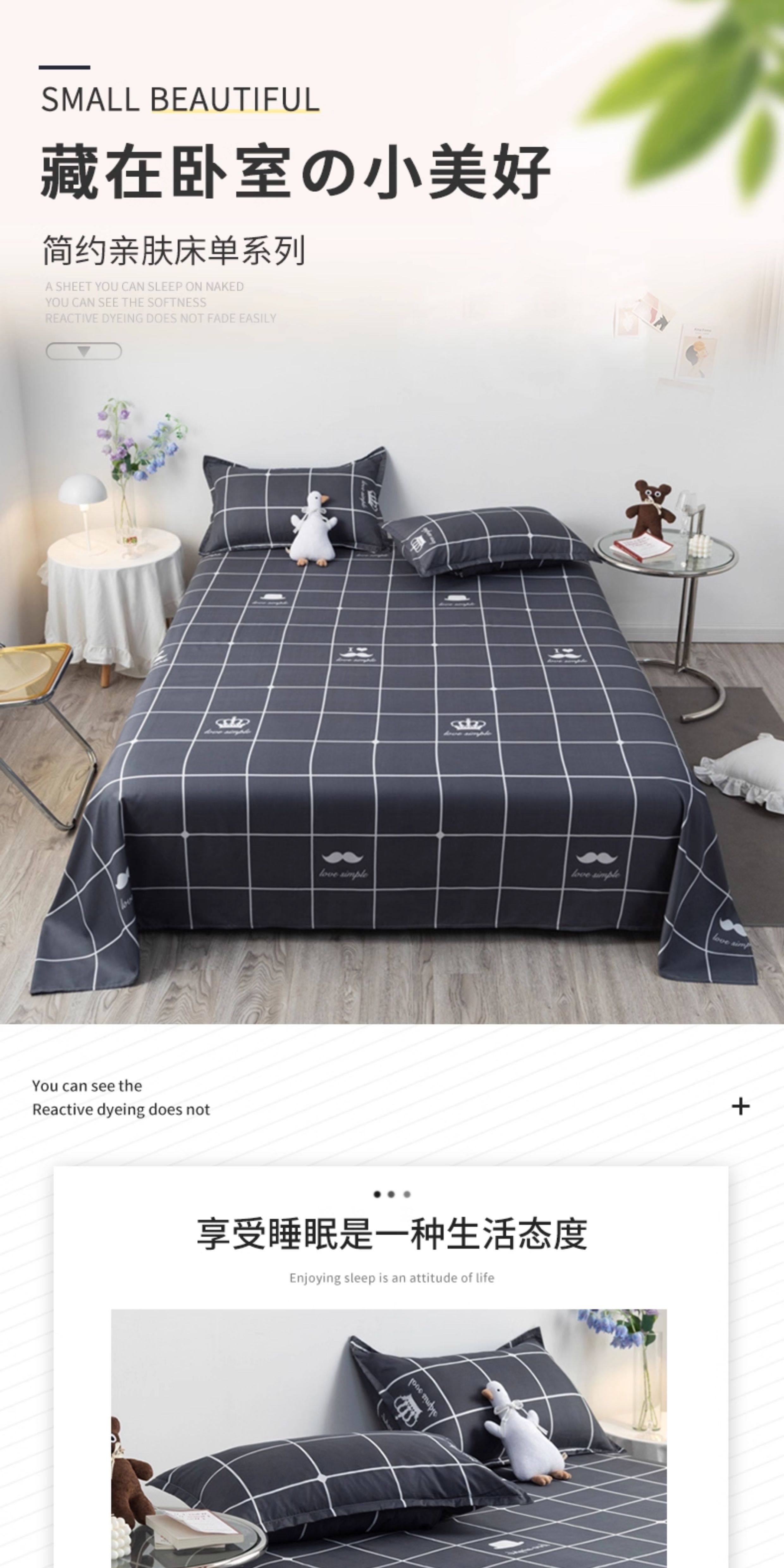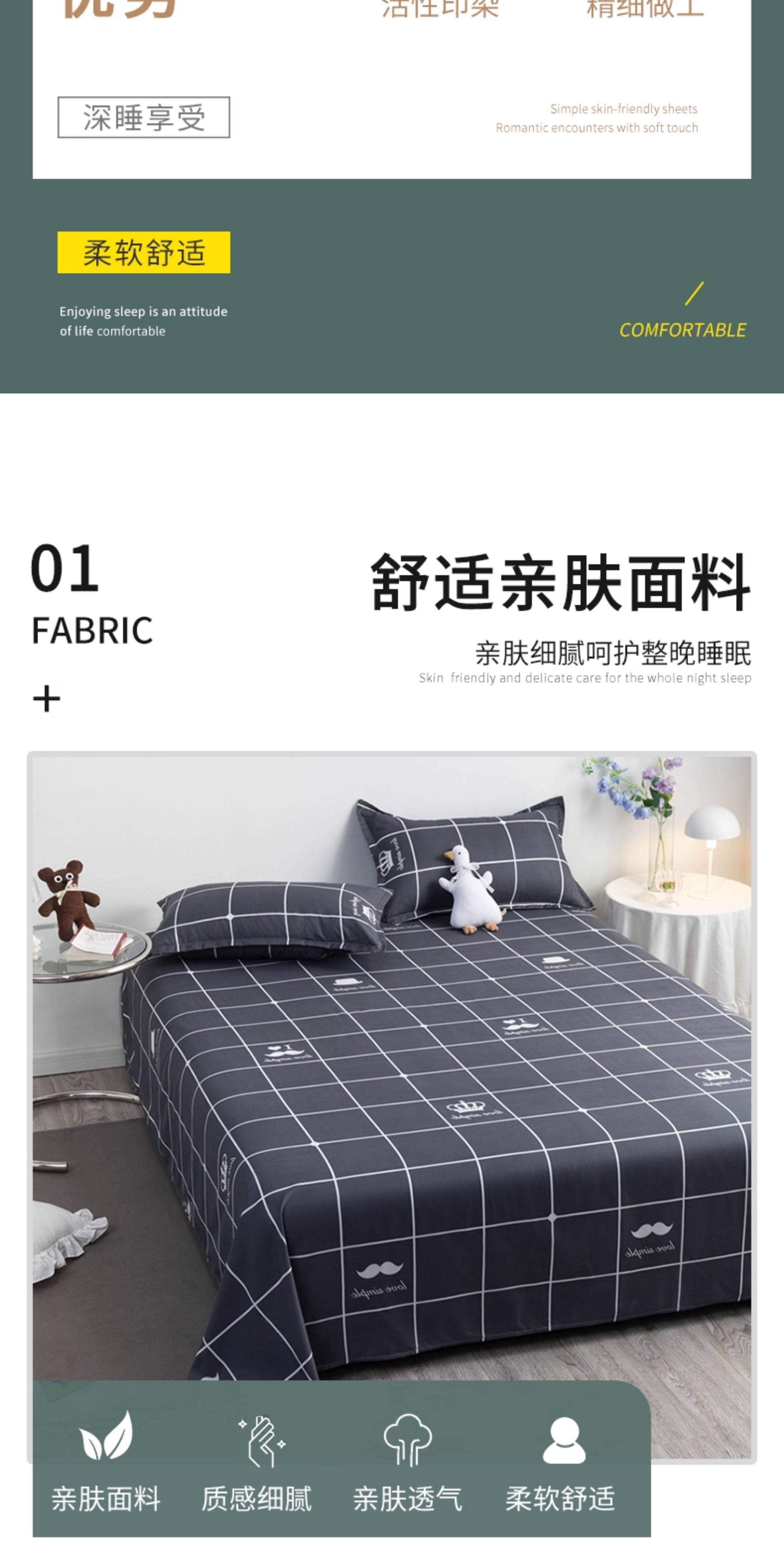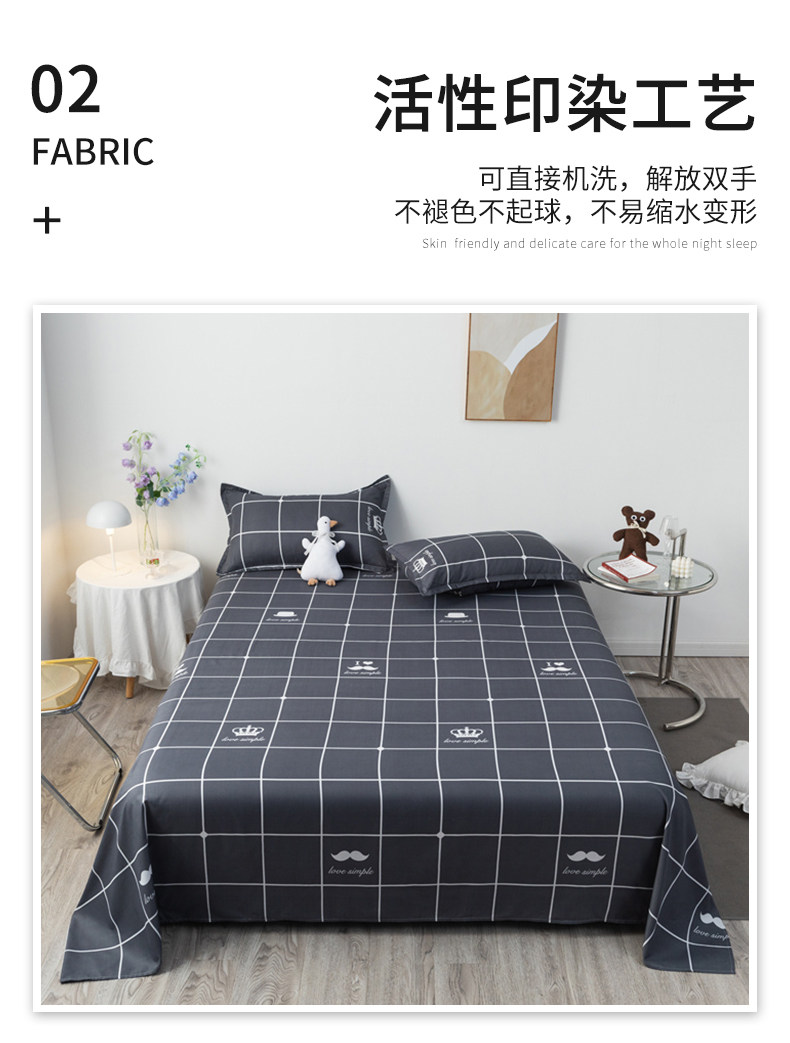 床单三件套【220x230cm+枕套一对】【柔软亲肤 不起球 不褪色】