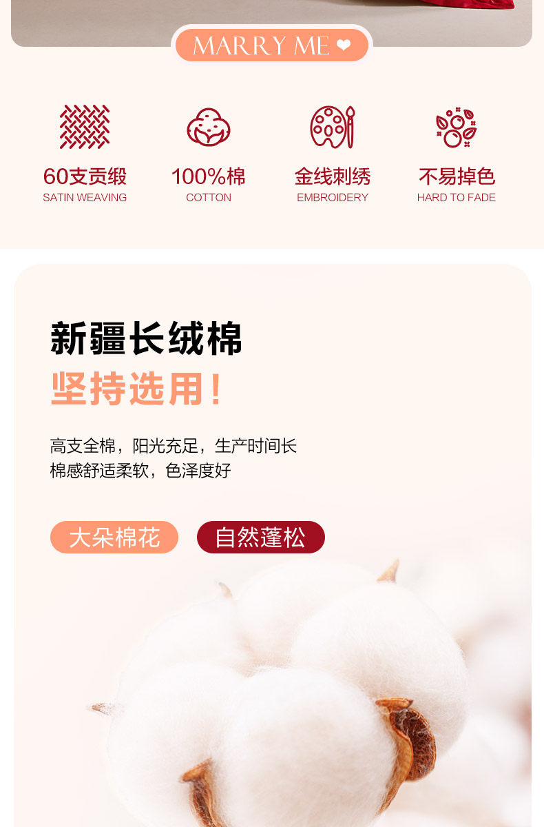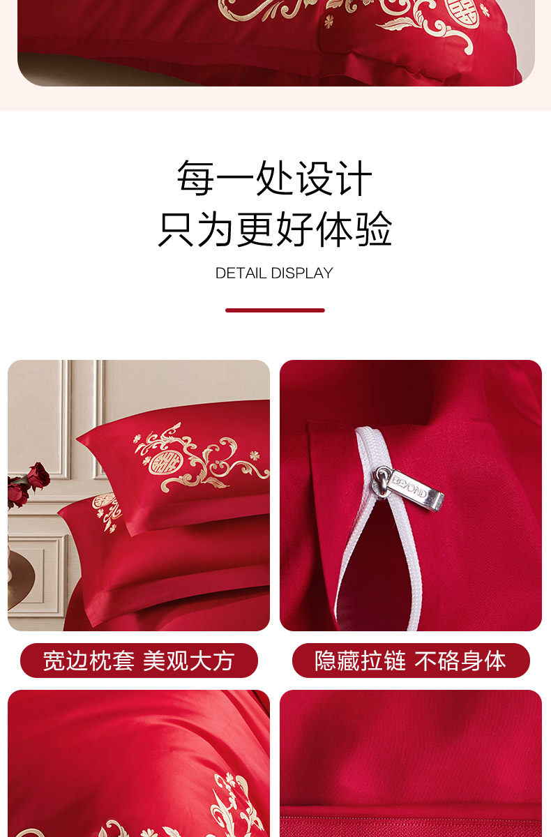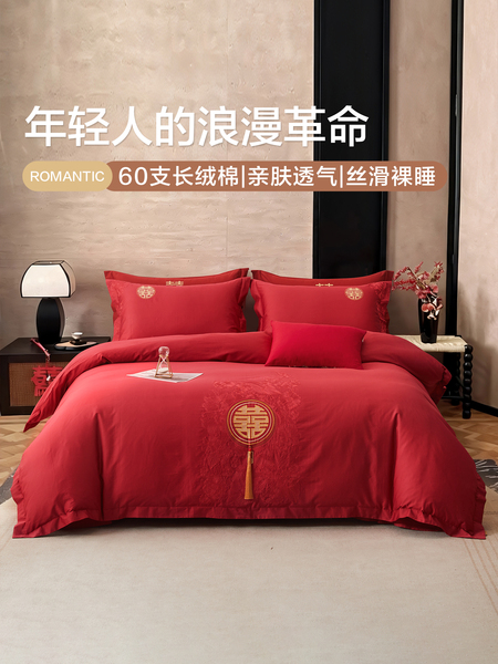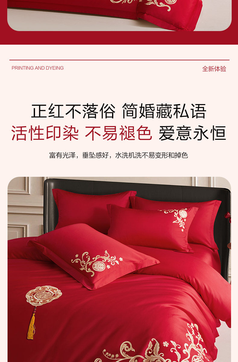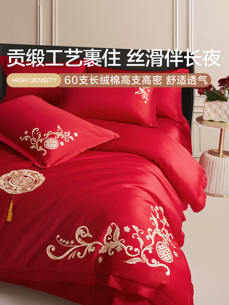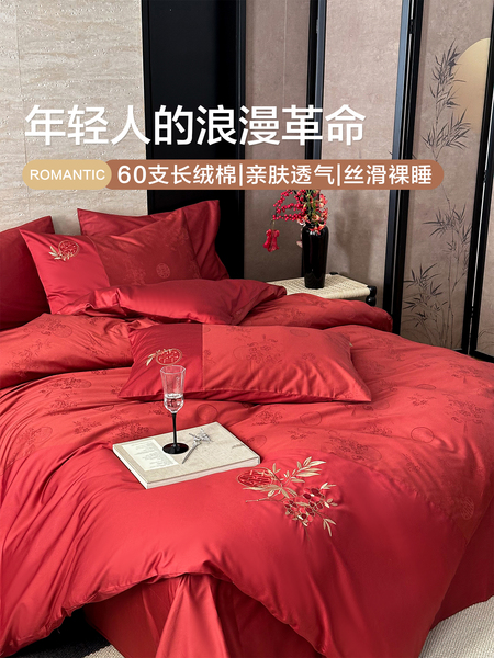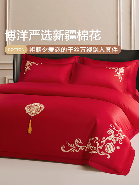 博洋60支红色婚庆四件套全棉结婚床上用品床单纯棉婚嫁被套喜庆