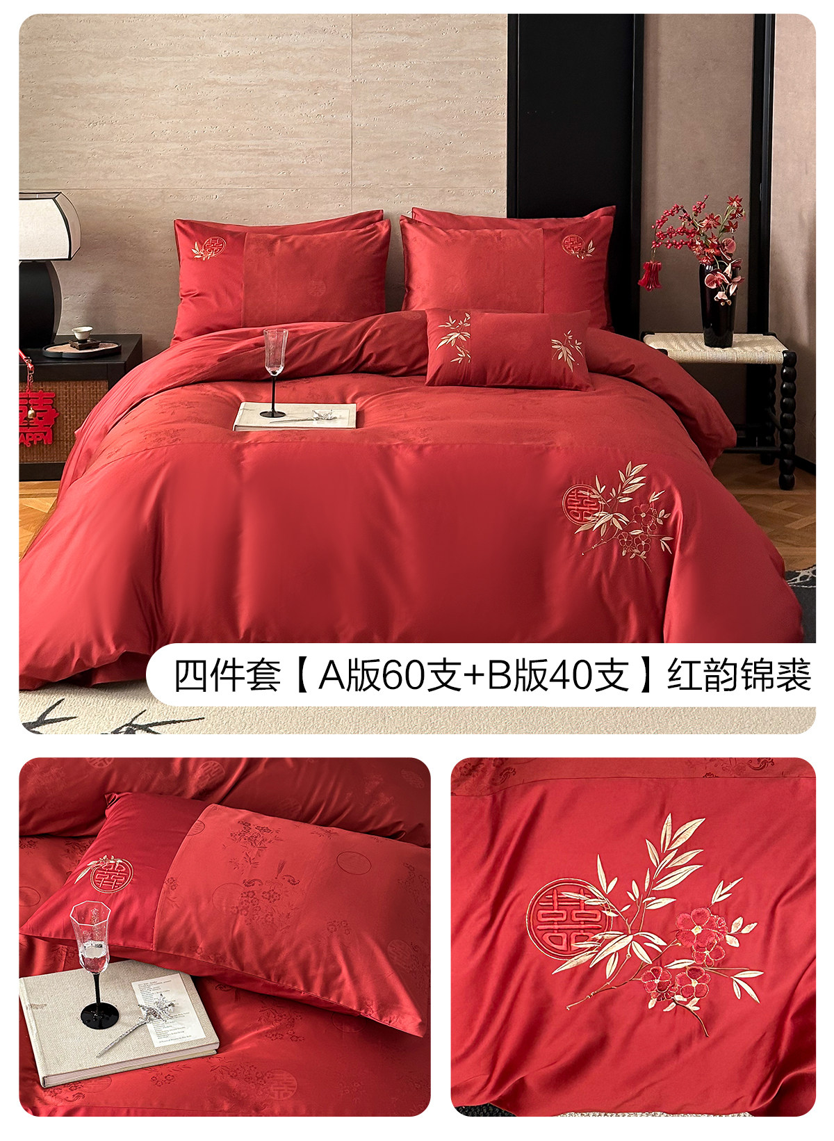 四件套【A版60支+B版40支】红韵锦裘