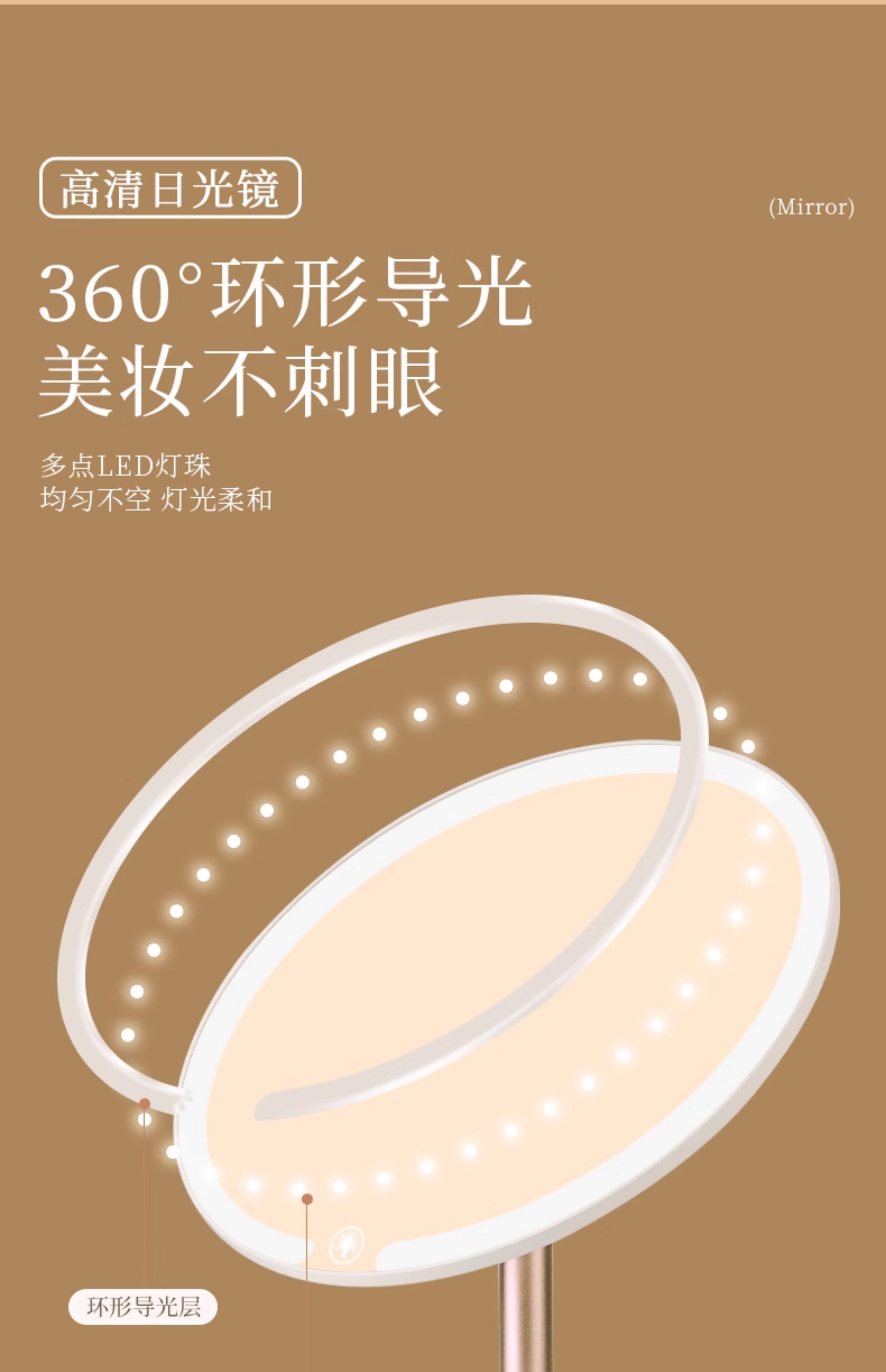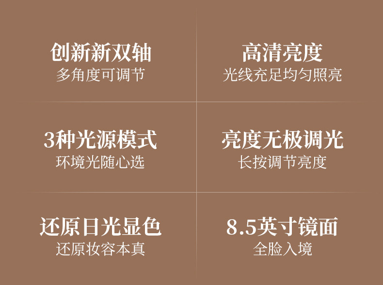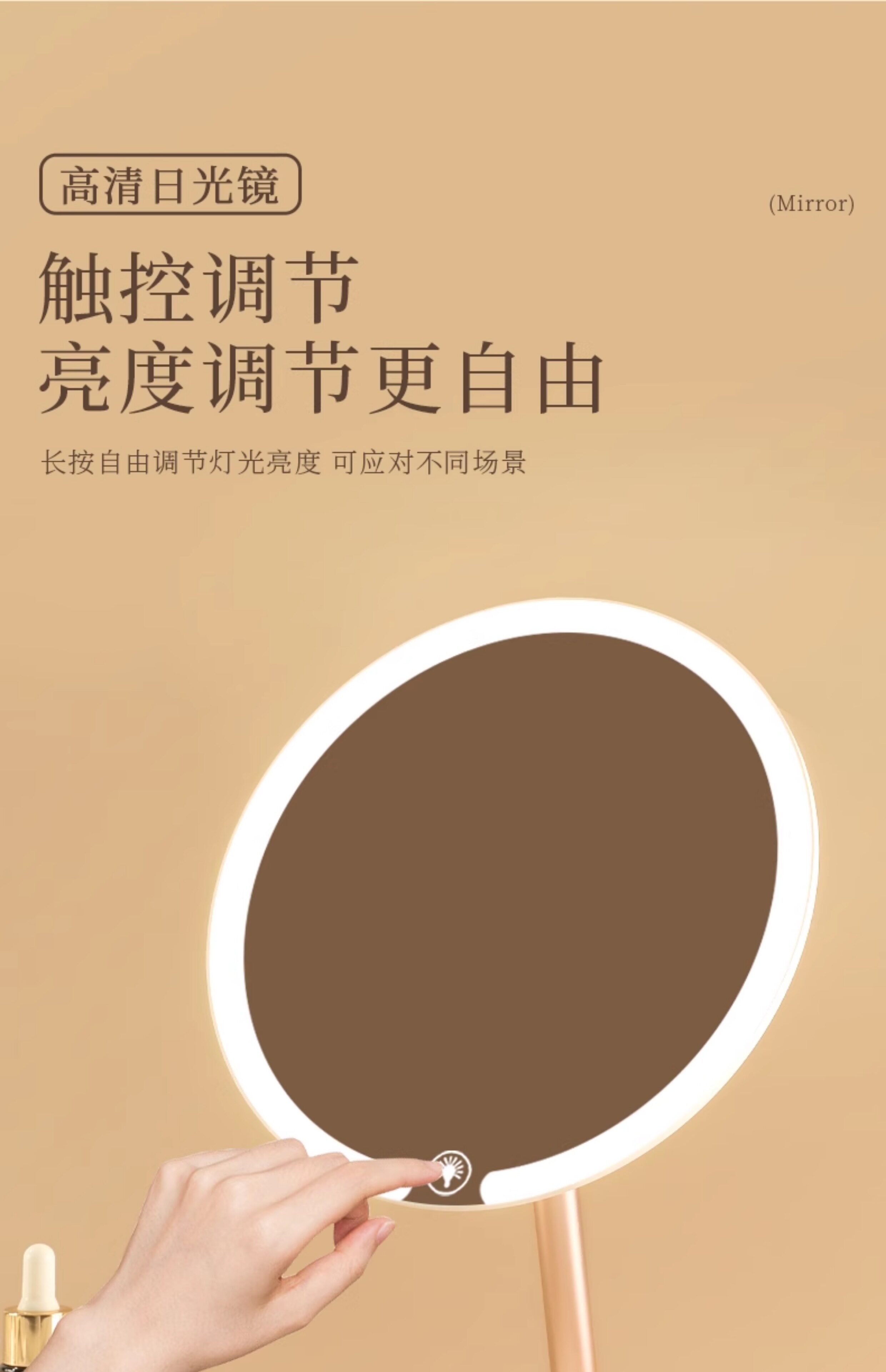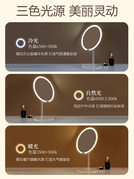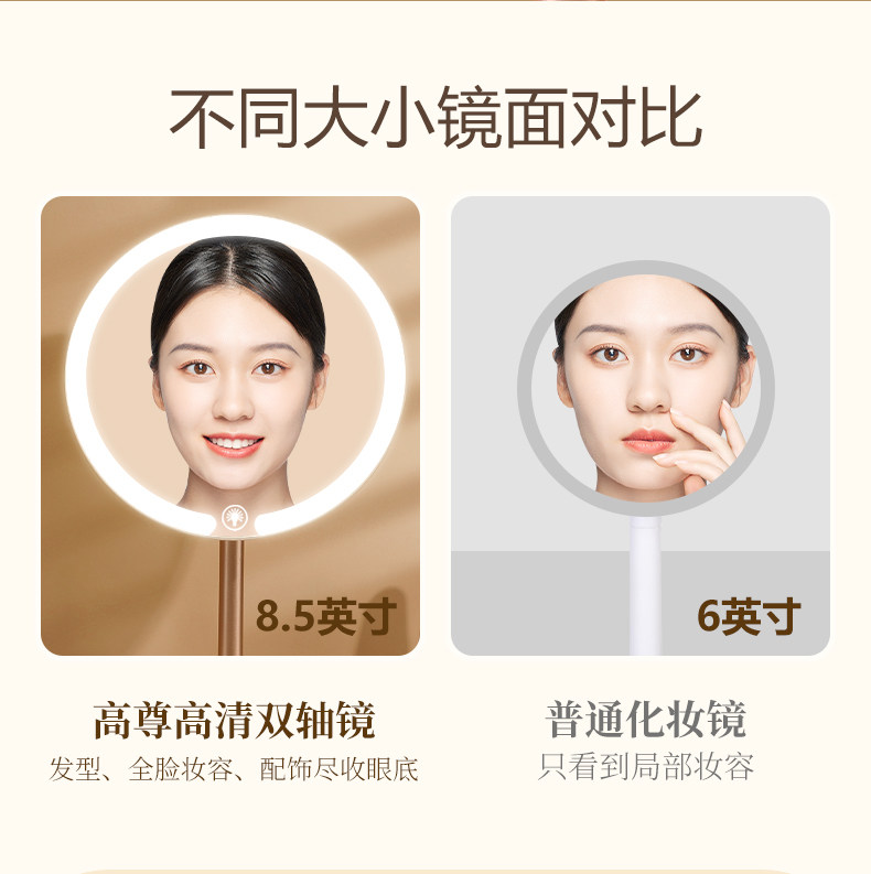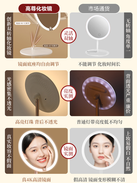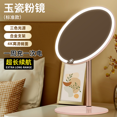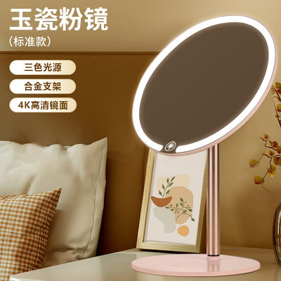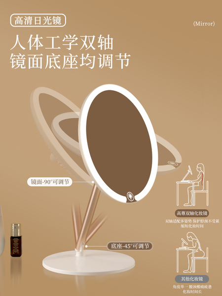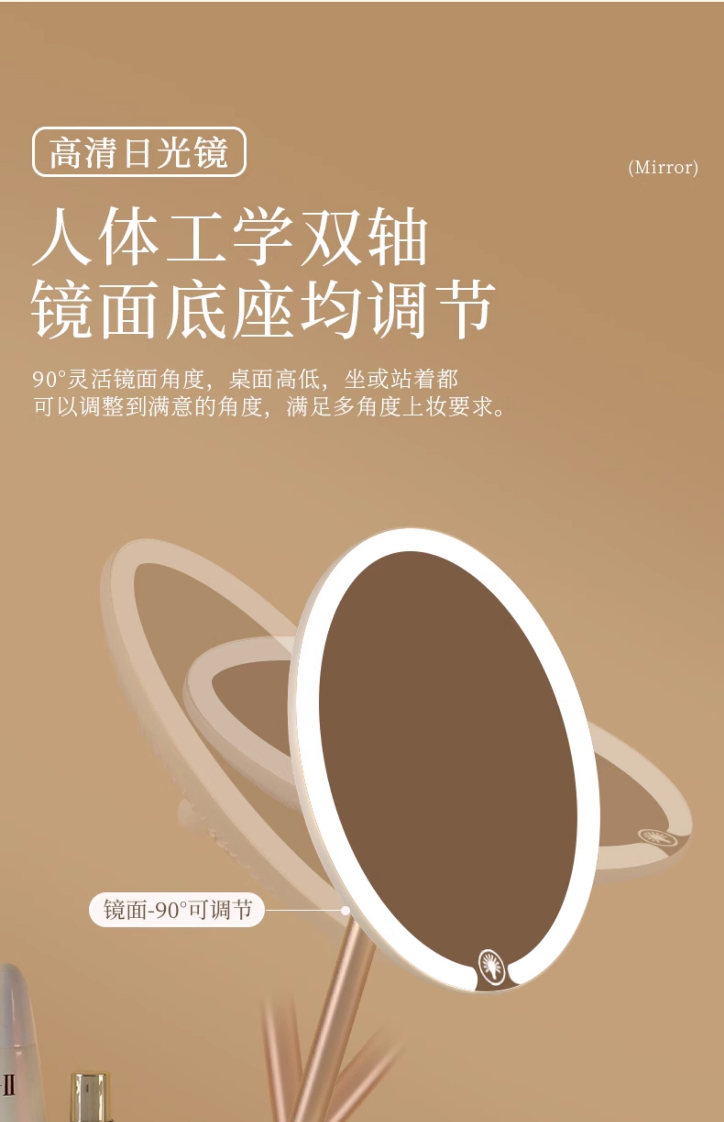 双轴化妆镜带灯台式桌面学生宿舍led梳妆镜折叠便携充电补光镜子