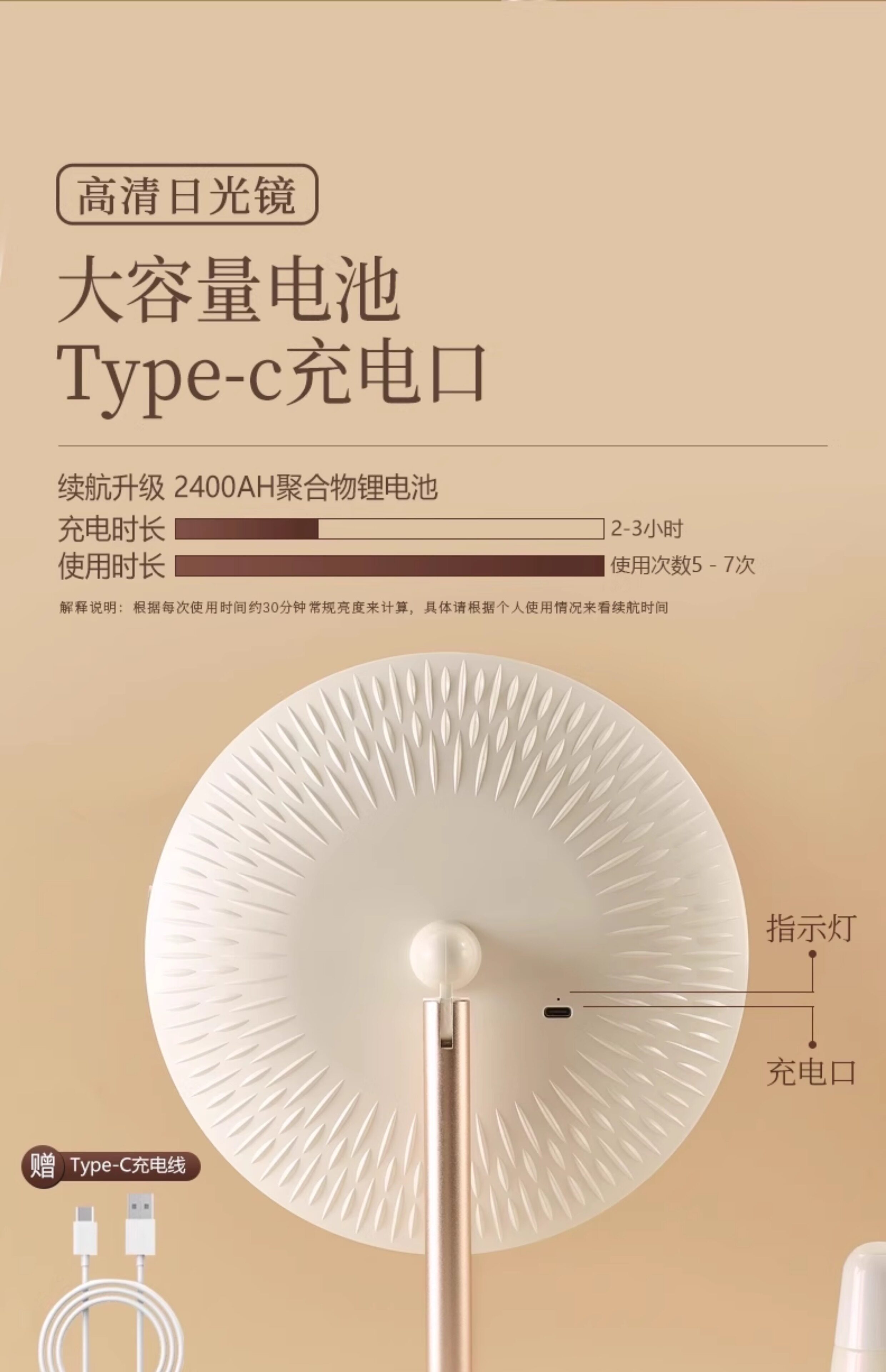 主图款玉瓷白【双转轴合金支架】-2400AH