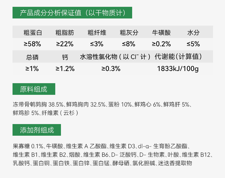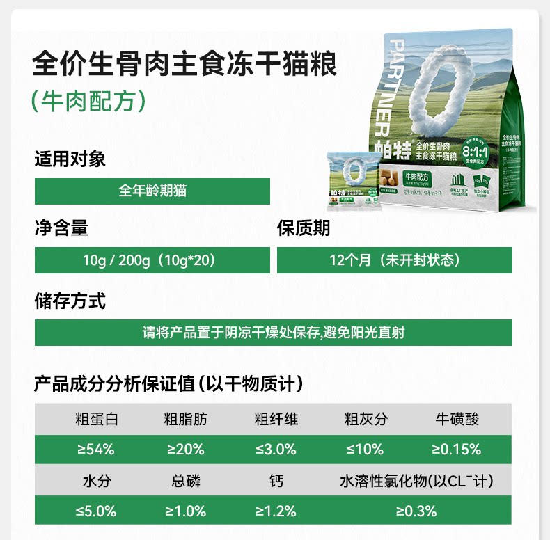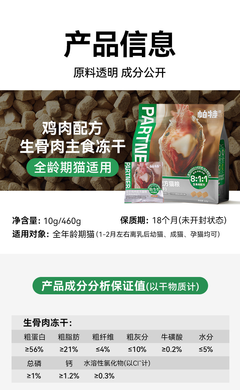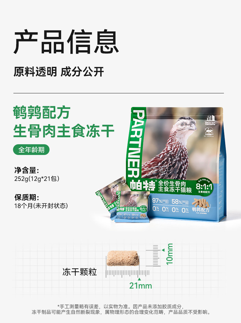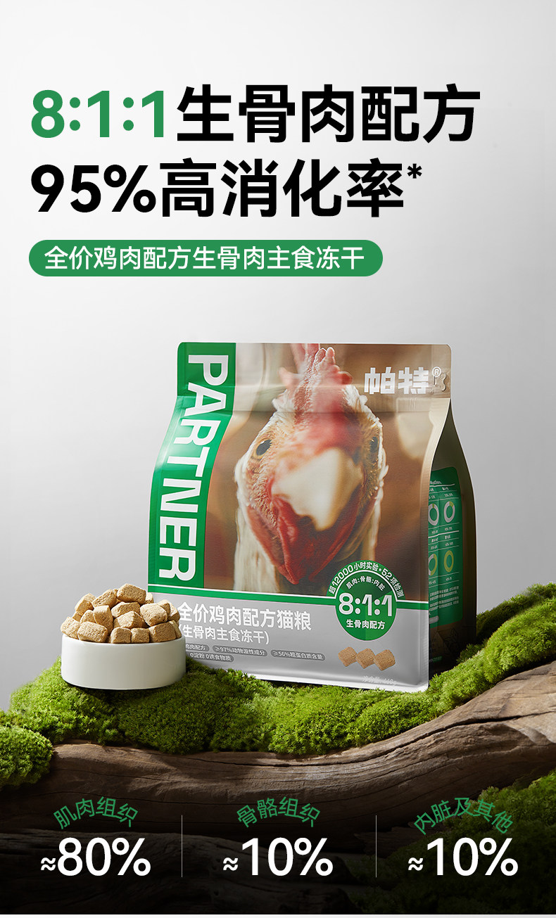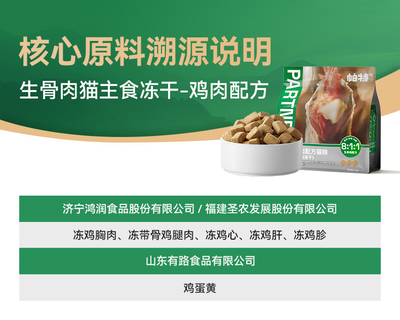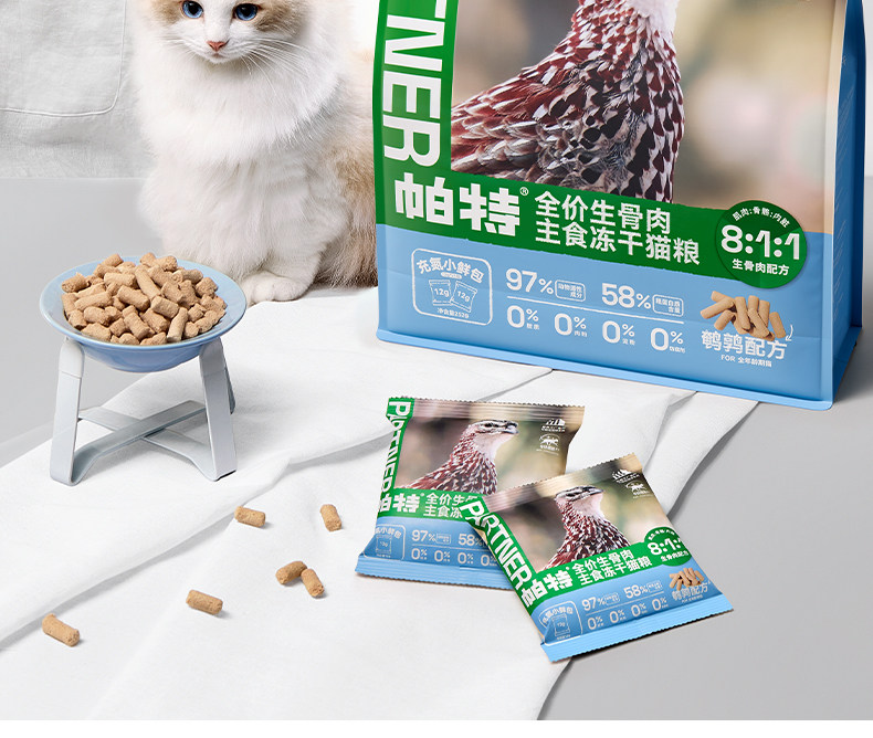 帕特生骨肉主食冻干鸡肉鹌鹑猫咪营养全价猫粮非零食宠物冻干试吃
