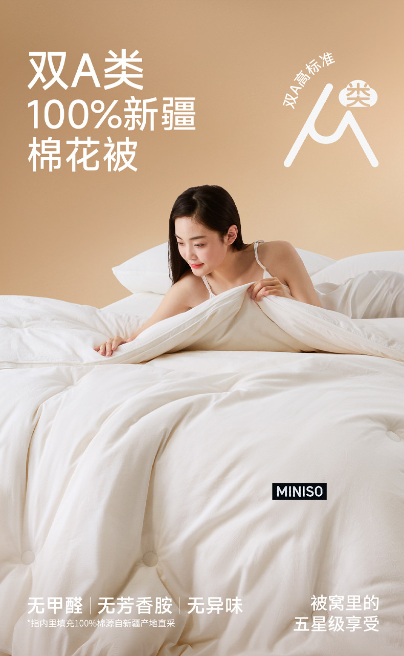 【升级旗舰款】miniso-白【加厚加密编织 更柔更软 100%新疆一级棉花填充 】