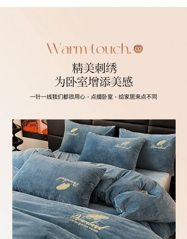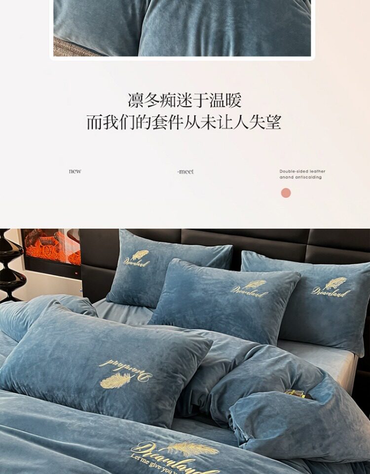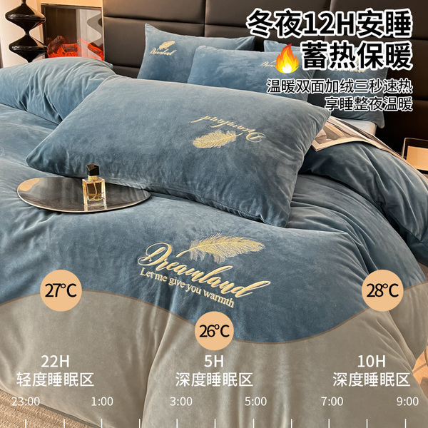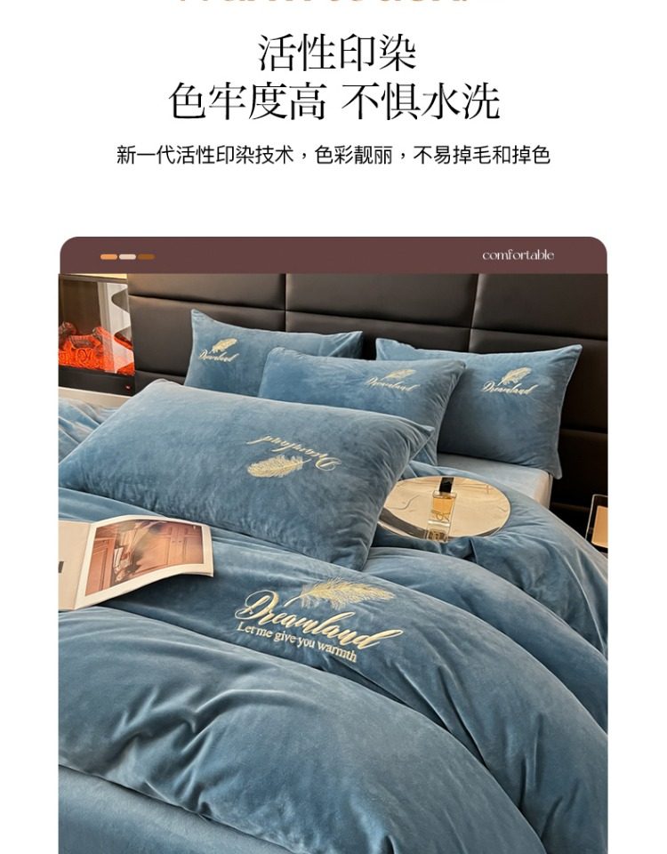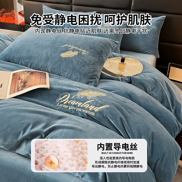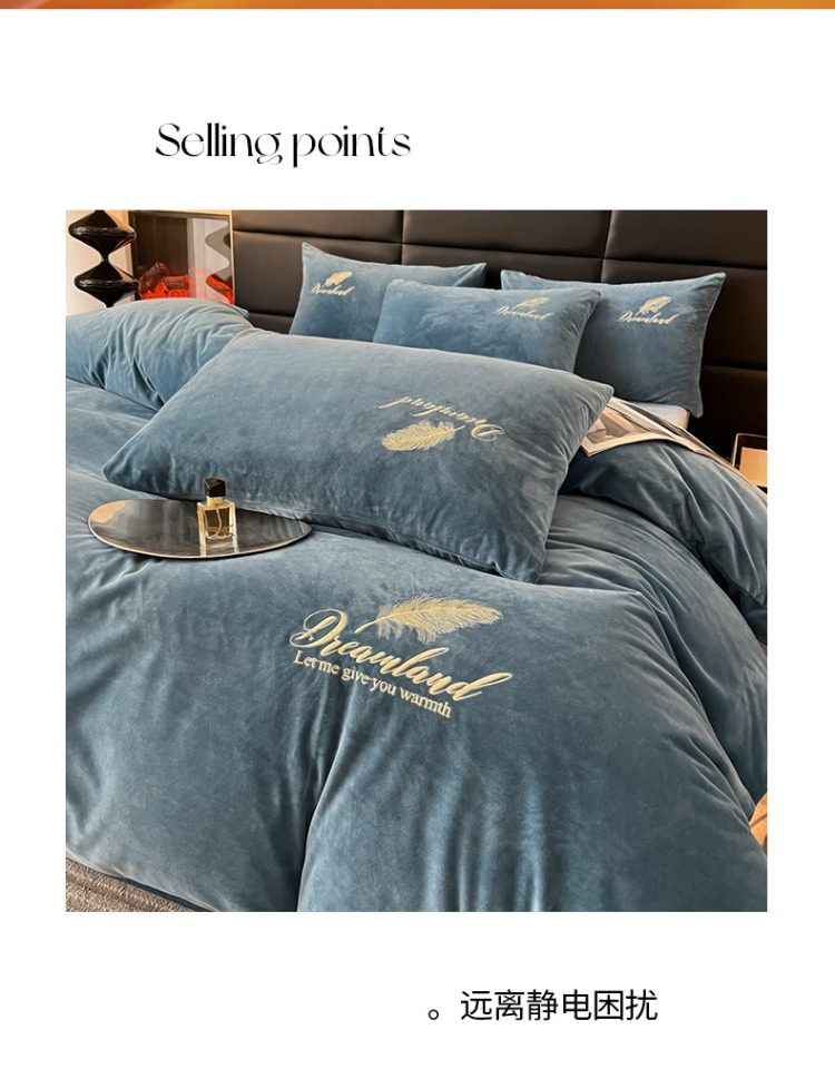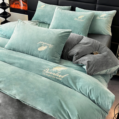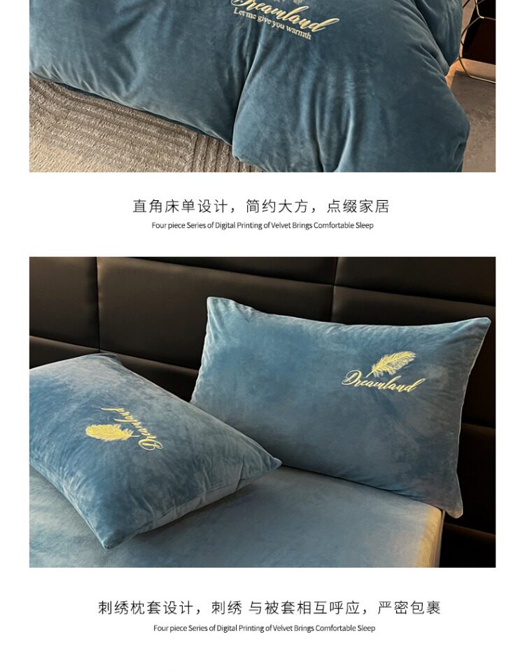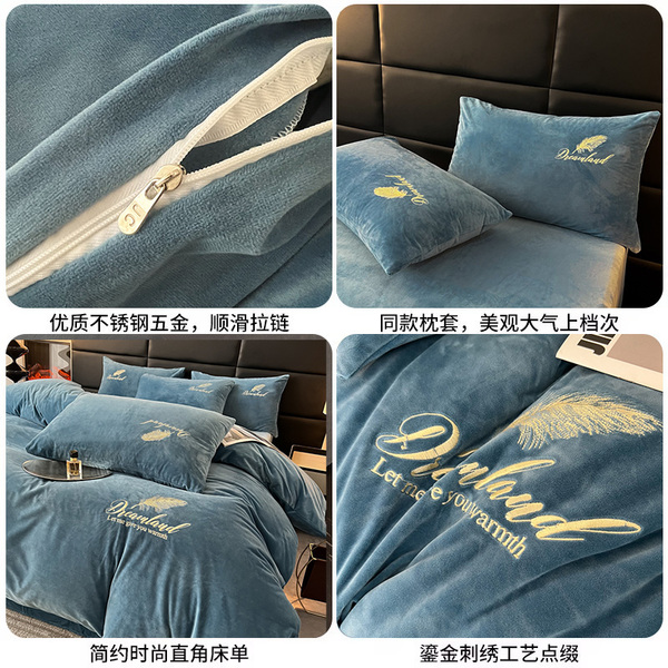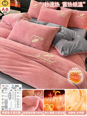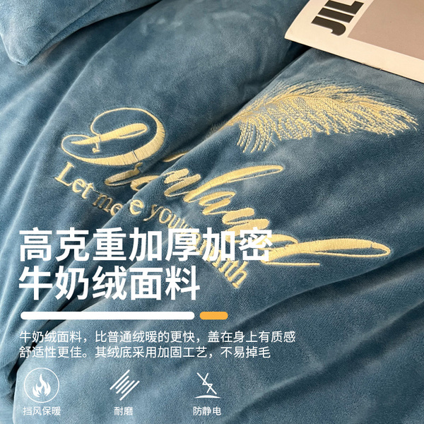 牛奶绒四件套2026新款冬季加厚加绒刺绣被套珊瑚绒床单保暖三件套
