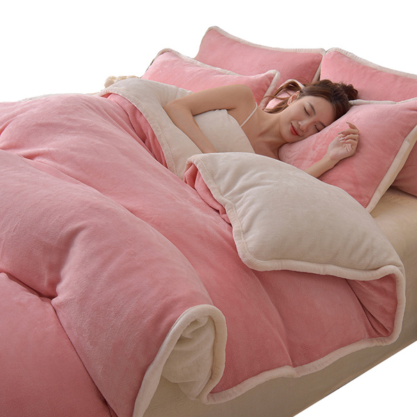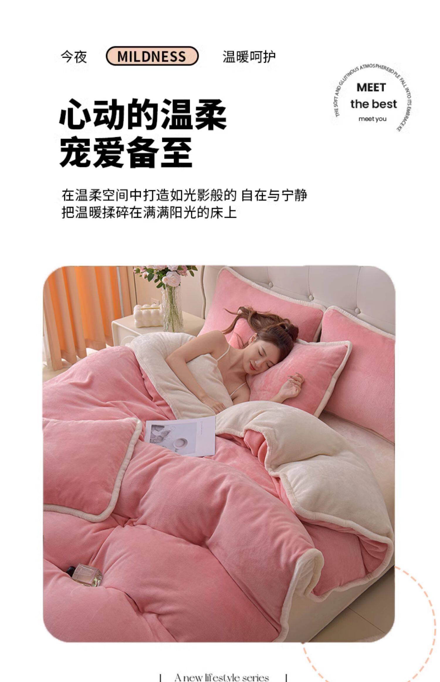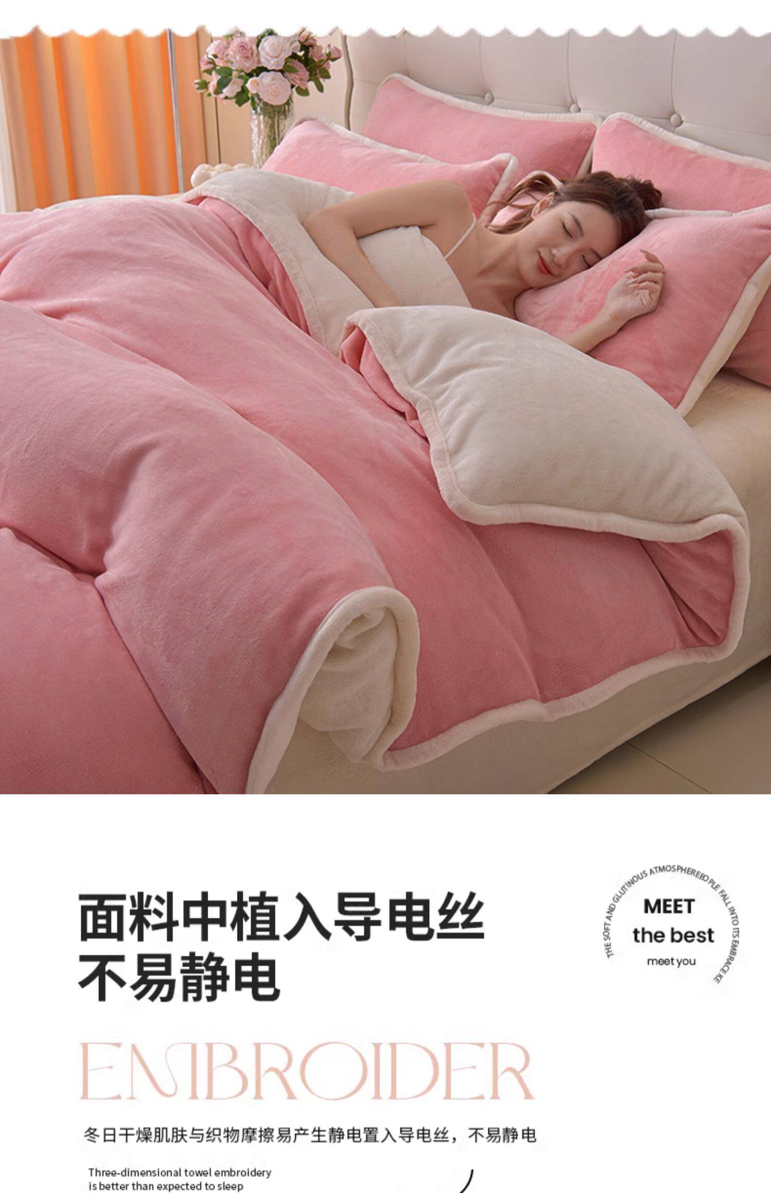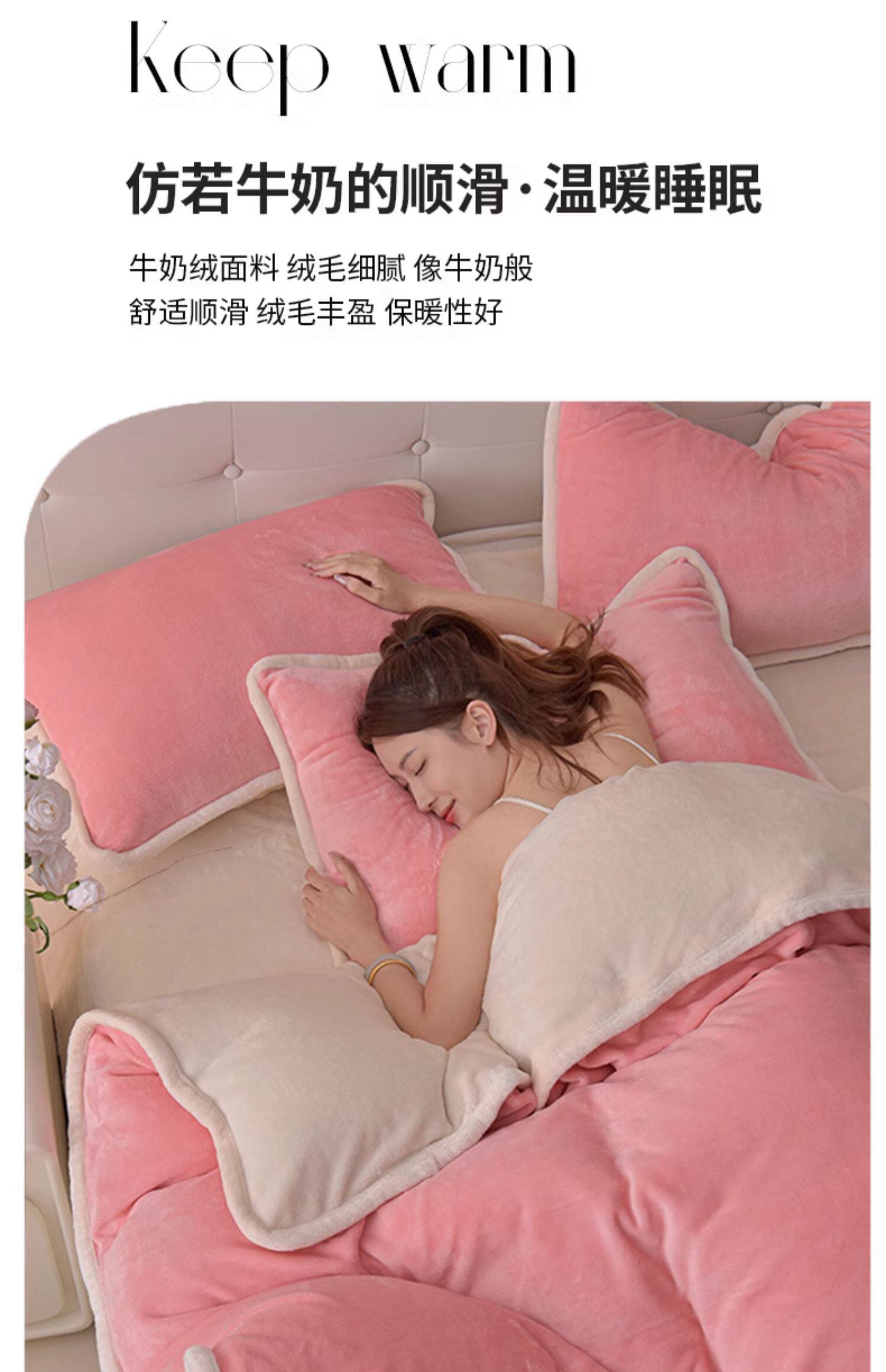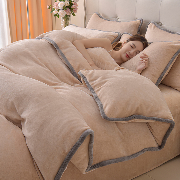 简约风牛奶绒四件套加厚珊瑚绒纯色床单被套单件加绒2025新款冬季