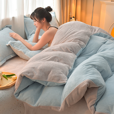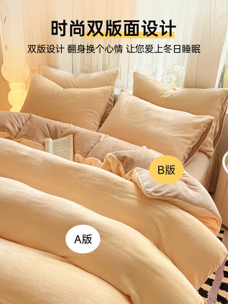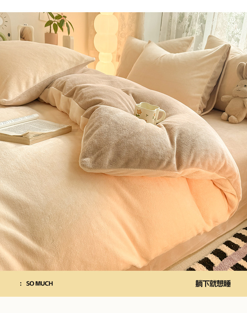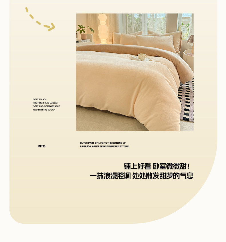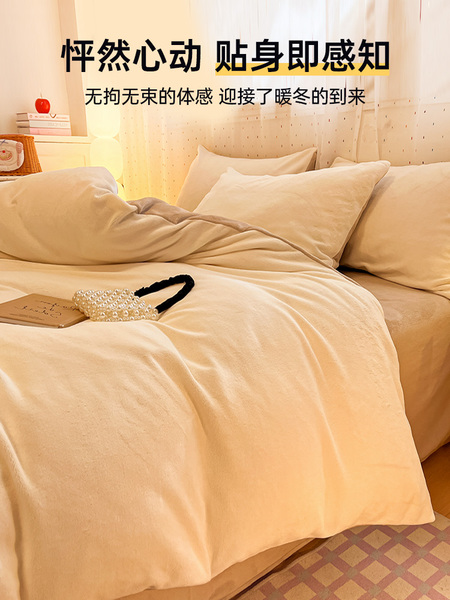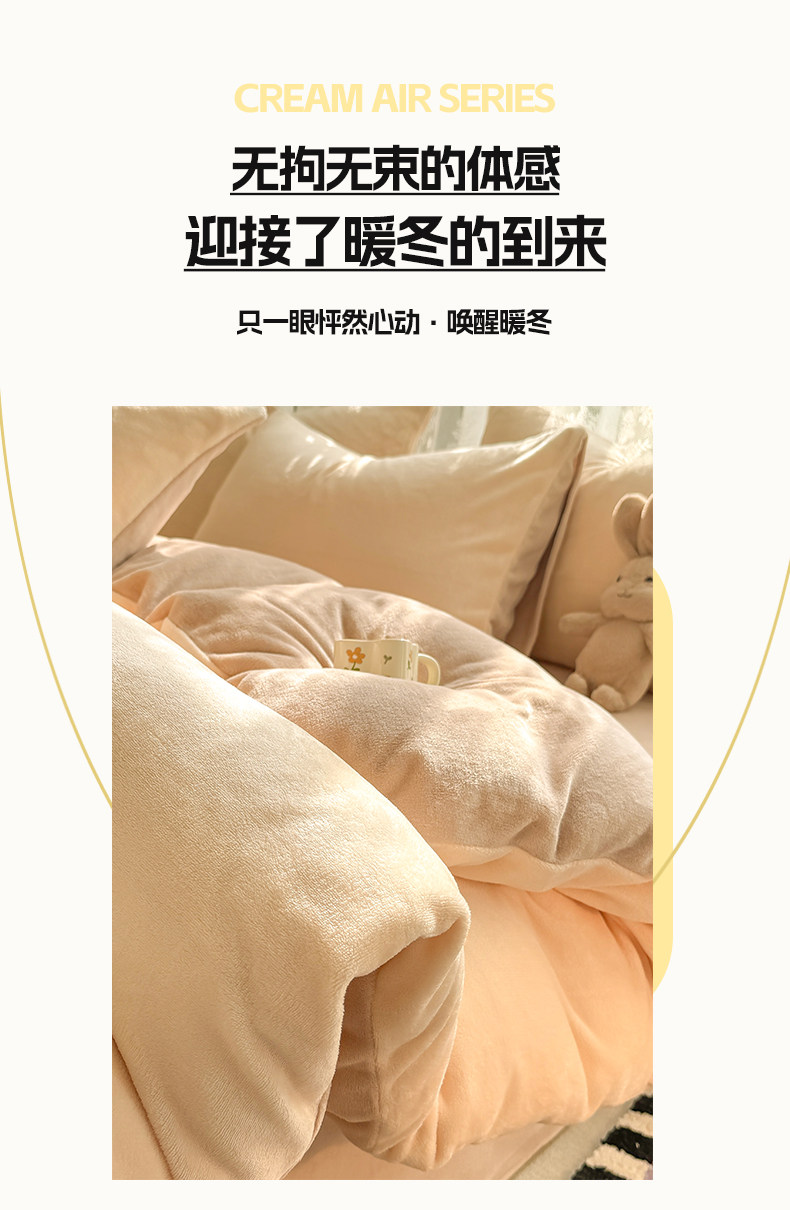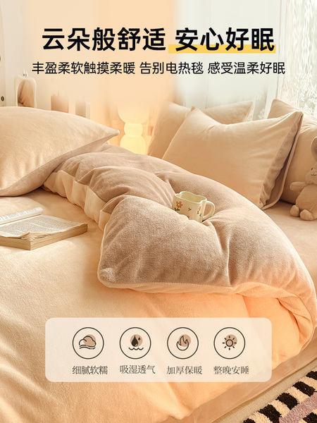 无印良品珊瑚牛奶绒被套加厚加绒单人床上被罩床品秋冬床单奶油风