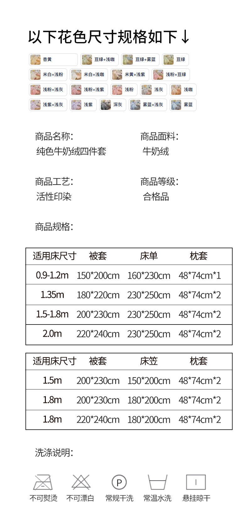 【1.5m/1.8m床-床单款四件套】被套*1+床单*1+枕套*2