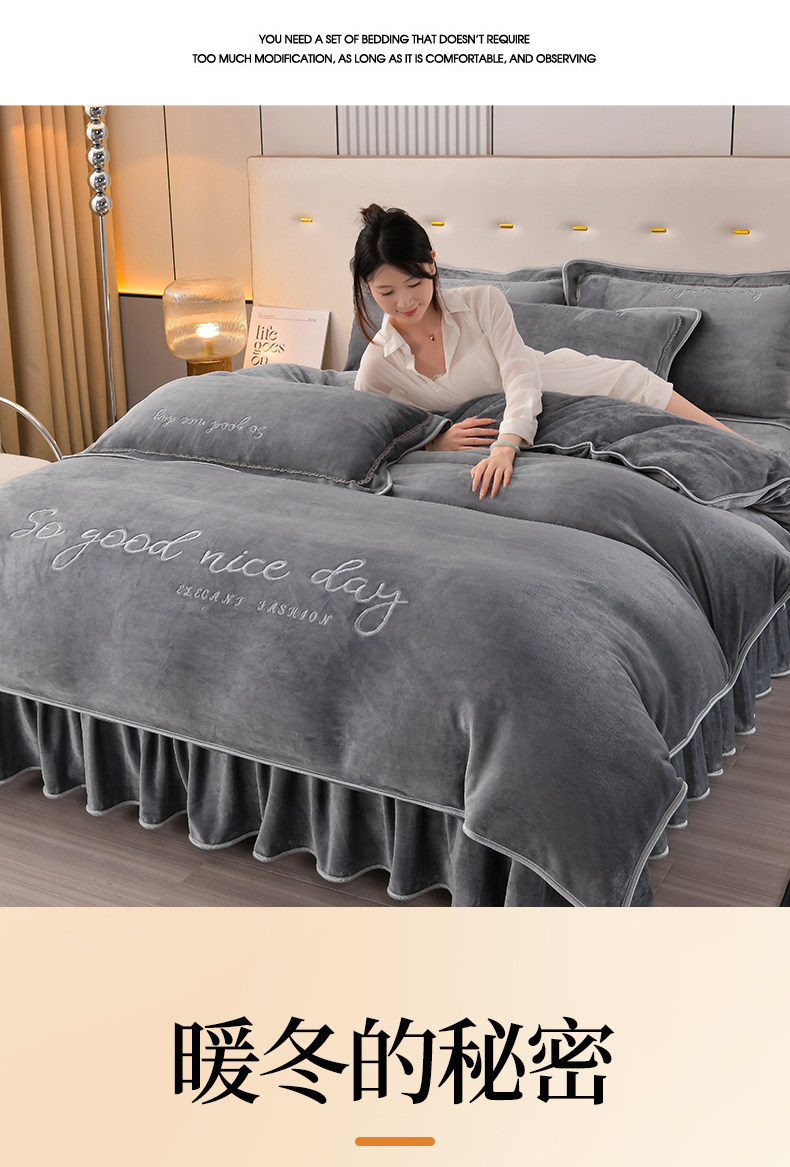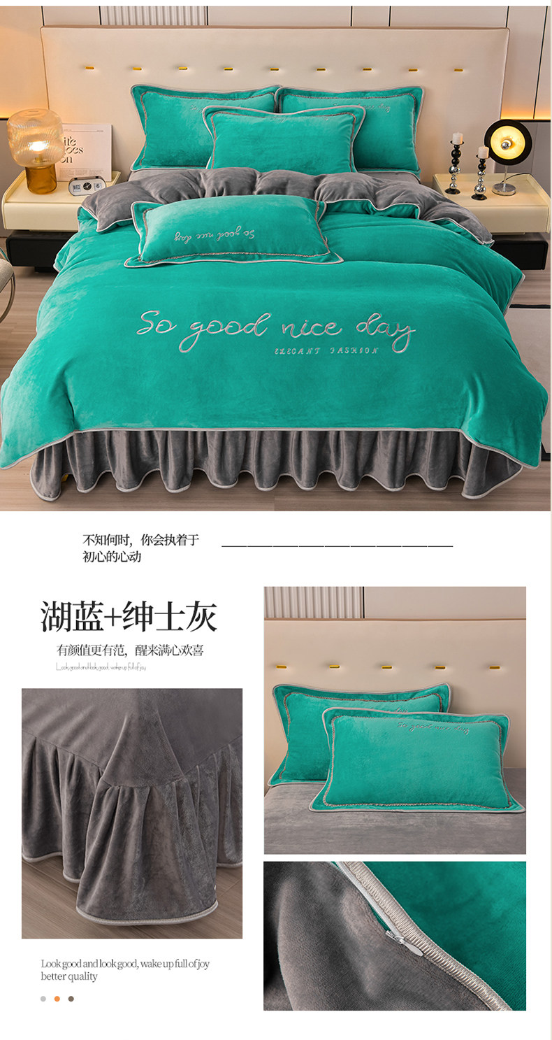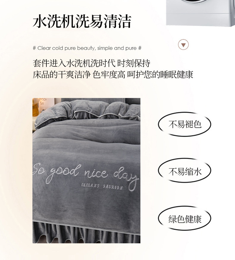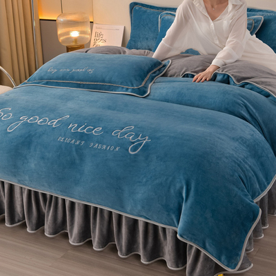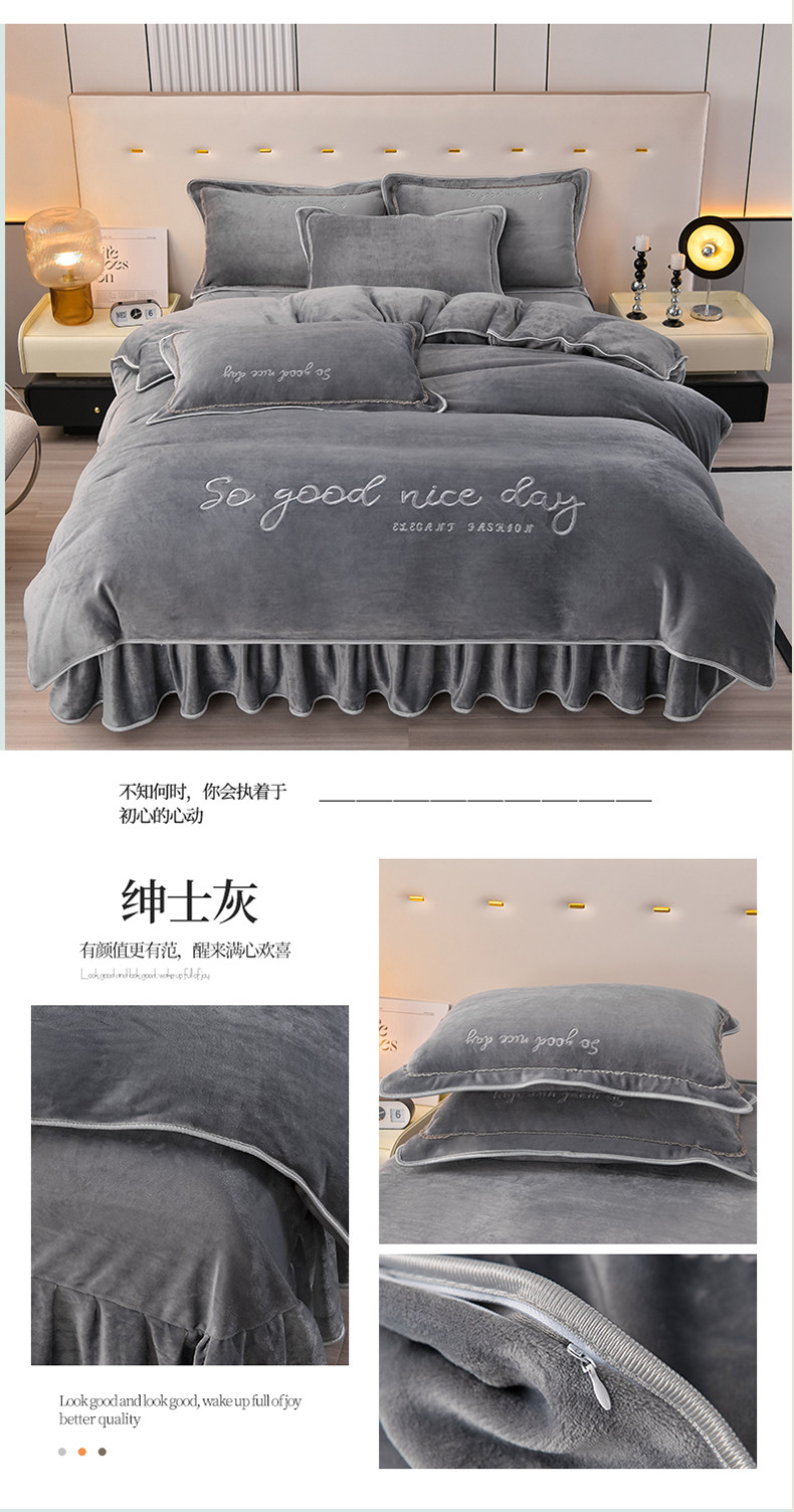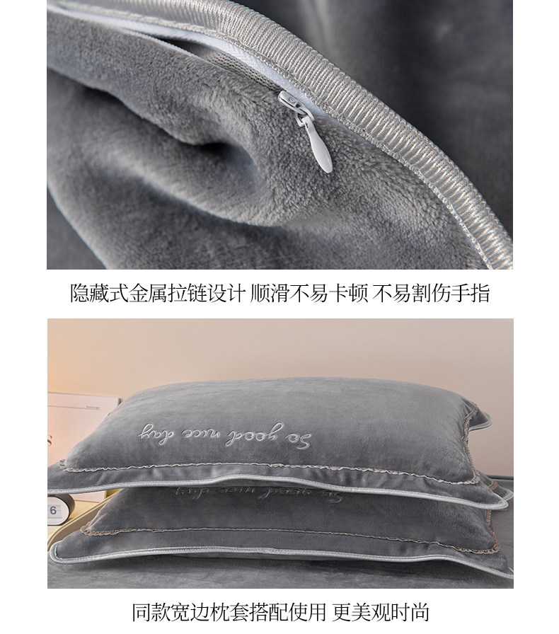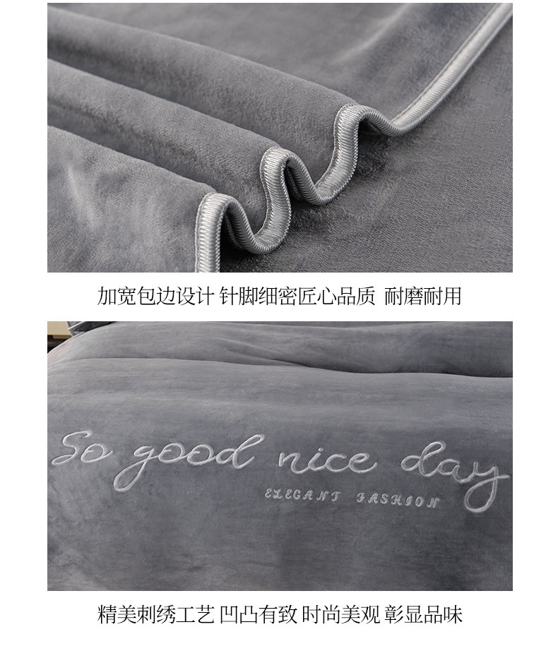 简约纯色刺绣牛奶绒被罩冬季双面珊瑚绒加厚保暖150x200x230被套