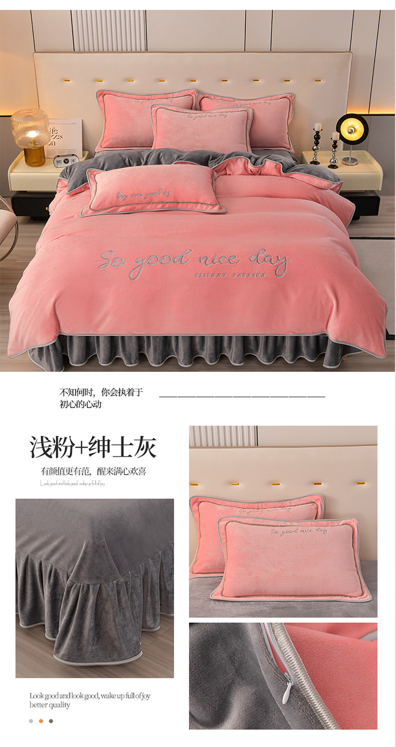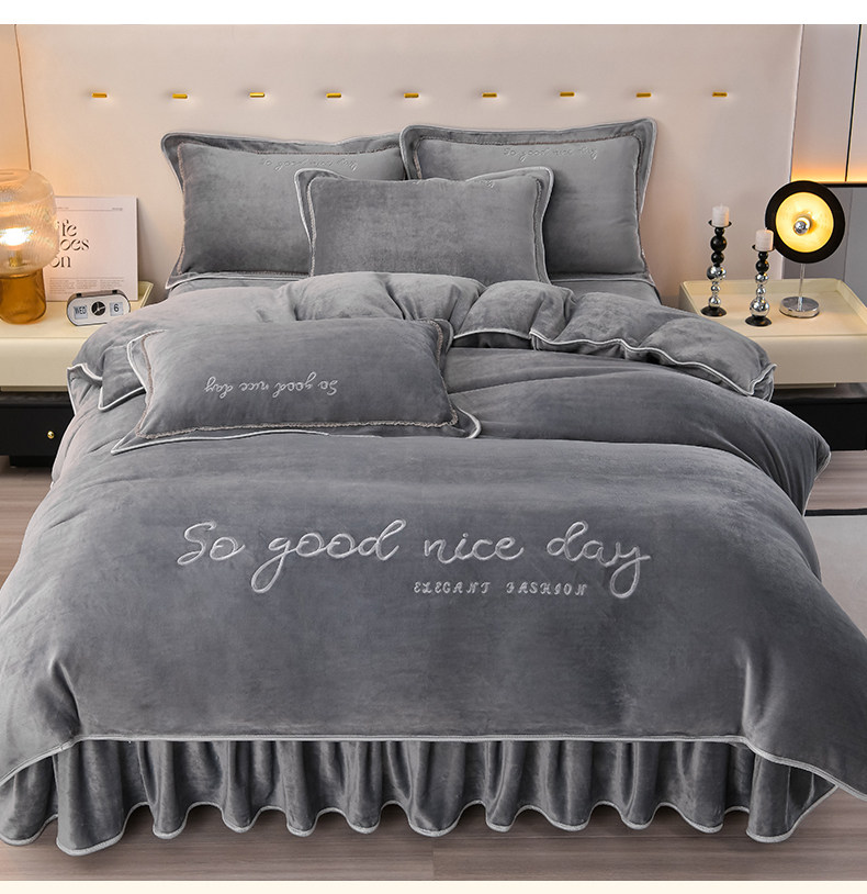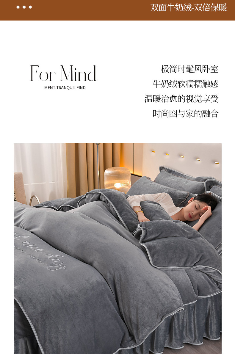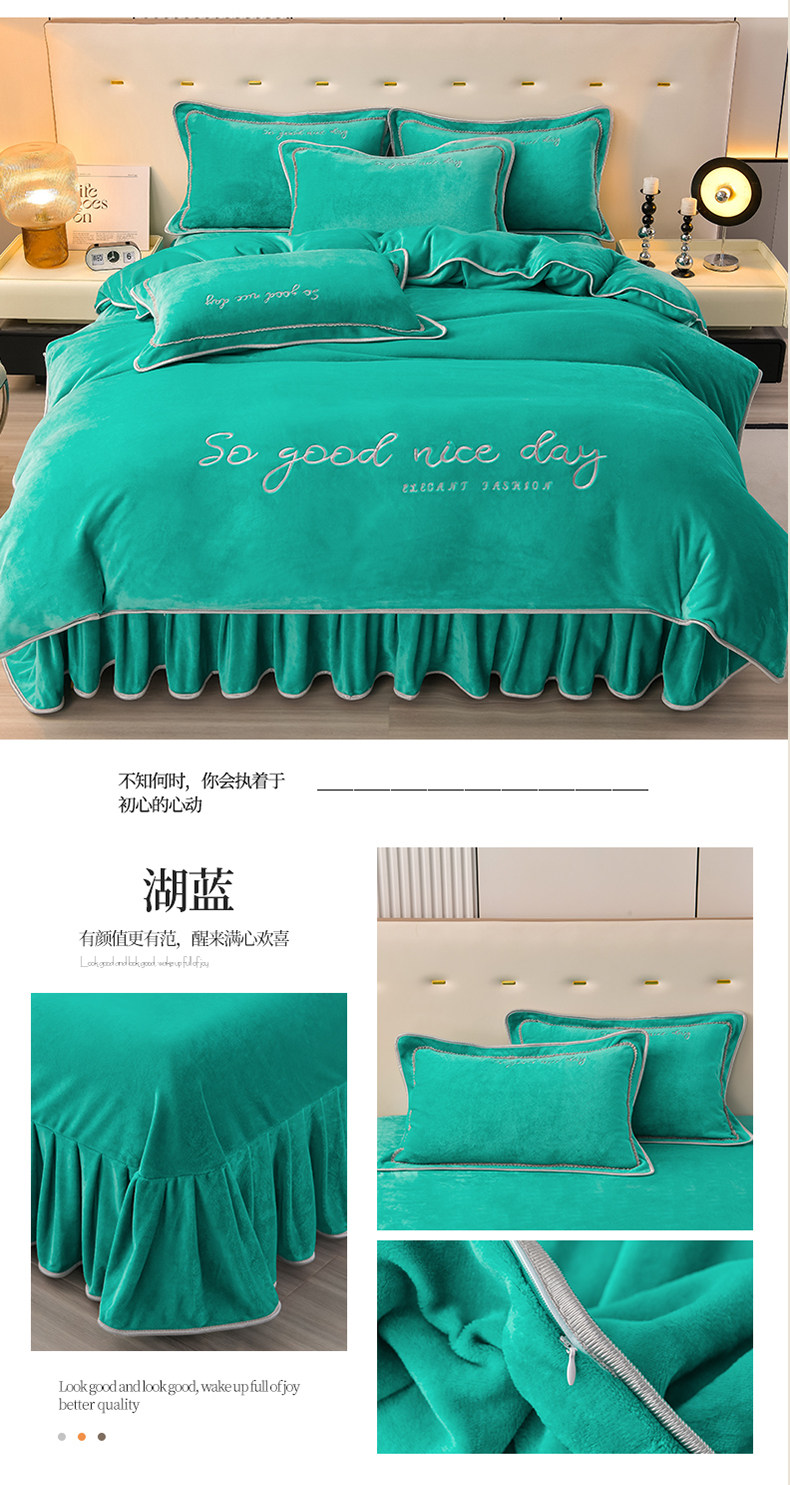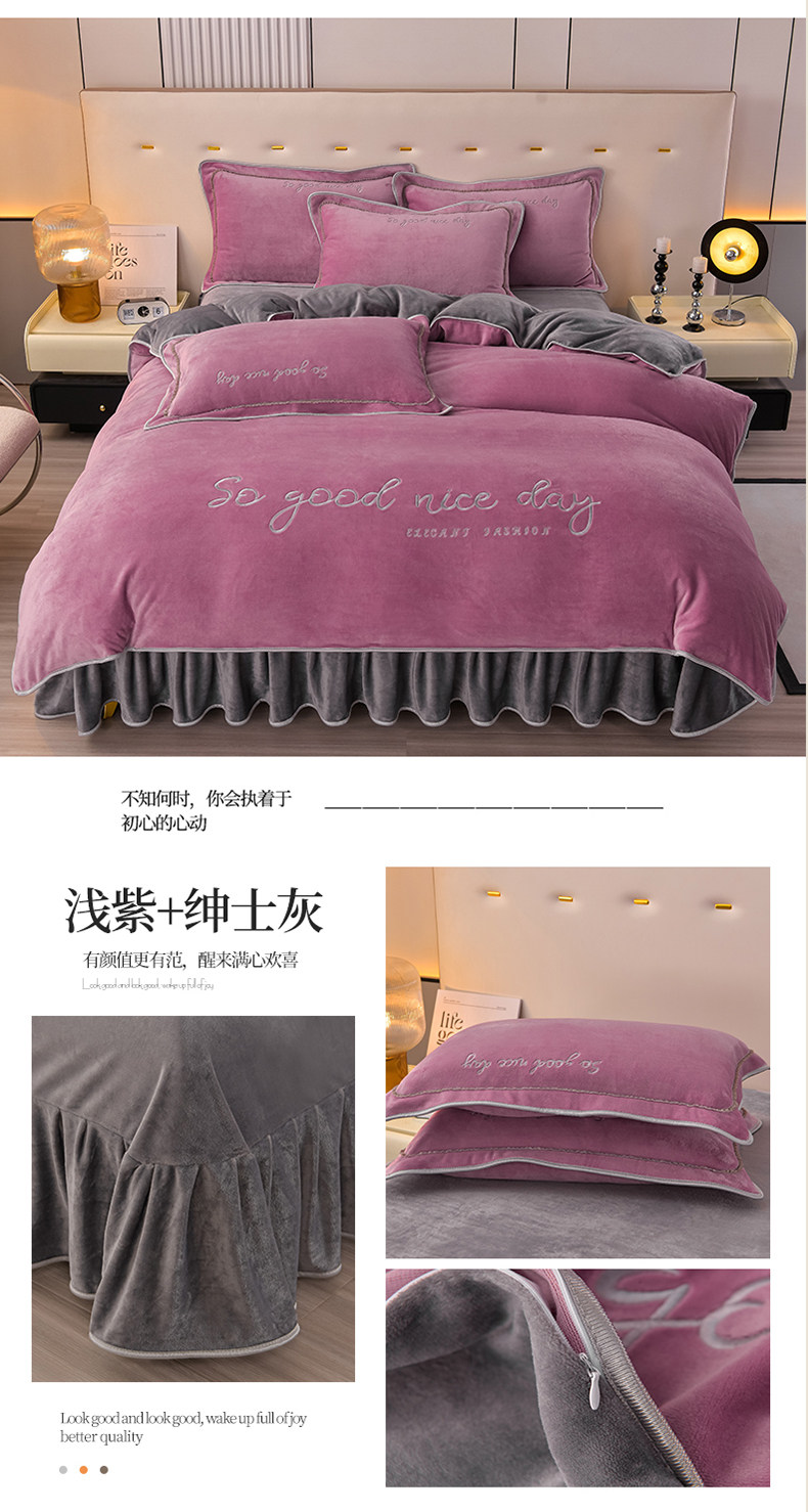 简约纯色刺绣牛奶绒被罩冬季双面珊瑚绒加厚保暖150x200x230被套