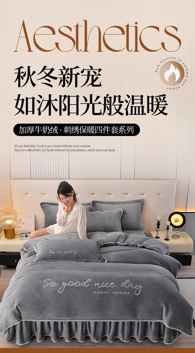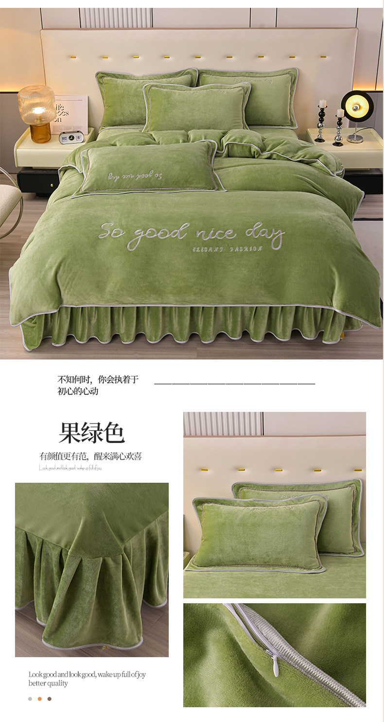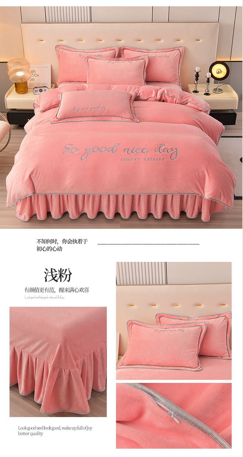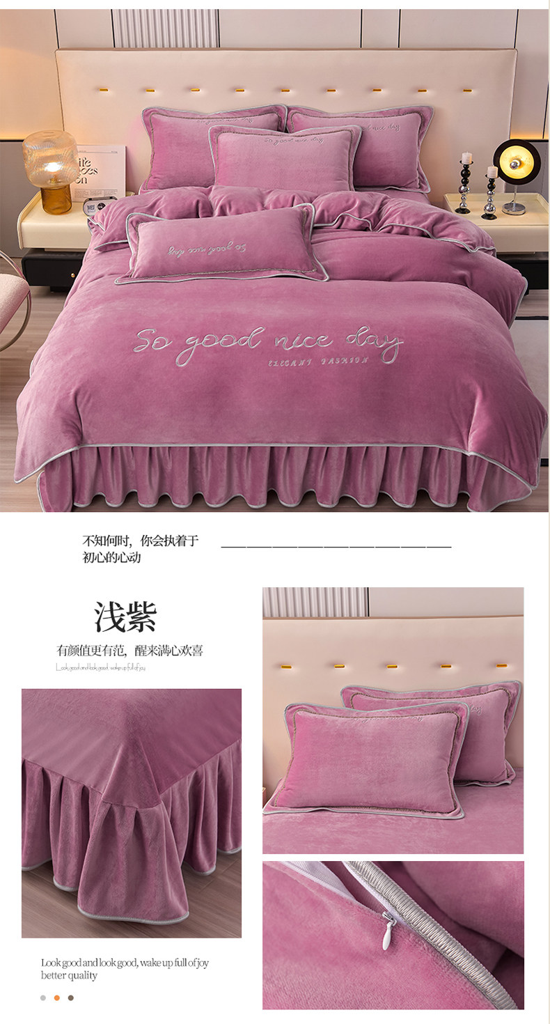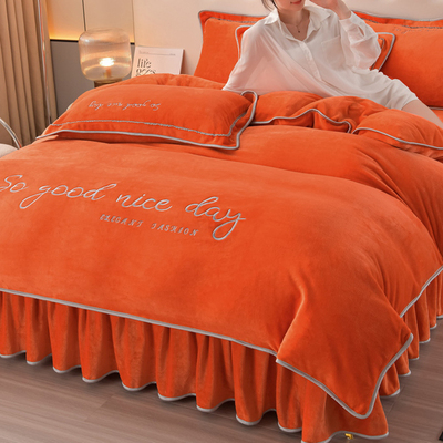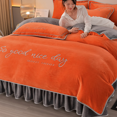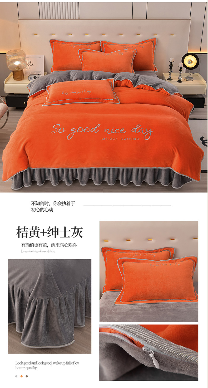 简约纯色刺绣牛奶绒被罩冬季双面珊瑚绒加厚保暖150x200x230被套