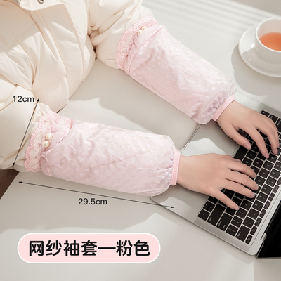 【粉色-1双装】蕾丝网纱长款袖套
