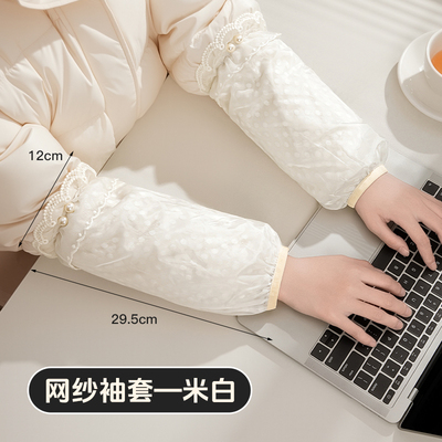 【米白-1双装】蕾丝网纱长款袖套